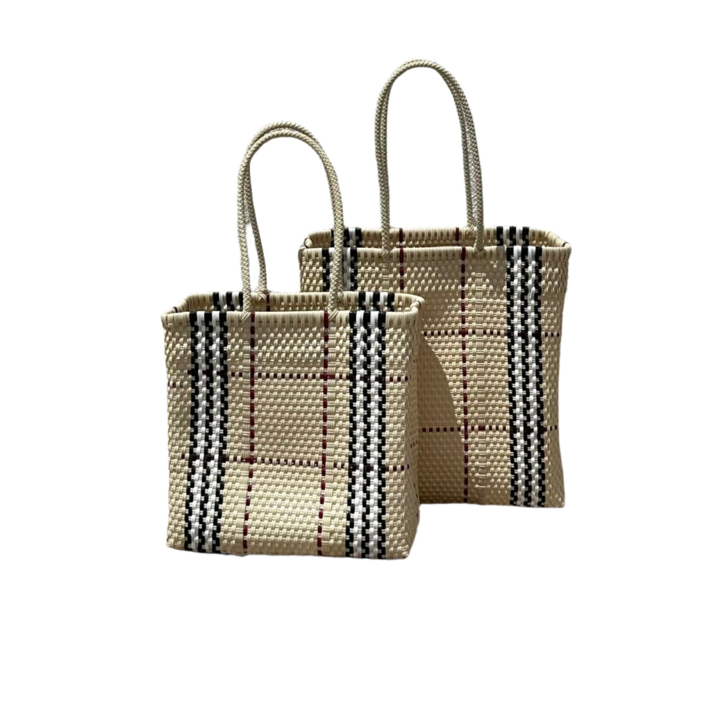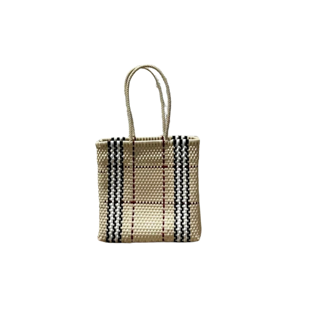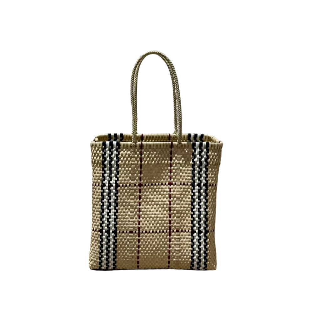This eye-catching "Gucci" recycled plastic tote bag, part of Nomad Chic’s Mexican exclusive collection, combines playful irony with sustainable style. Handcrafted from repurposed materials, it’s a bold statement piece with a wink of fashion humor.
