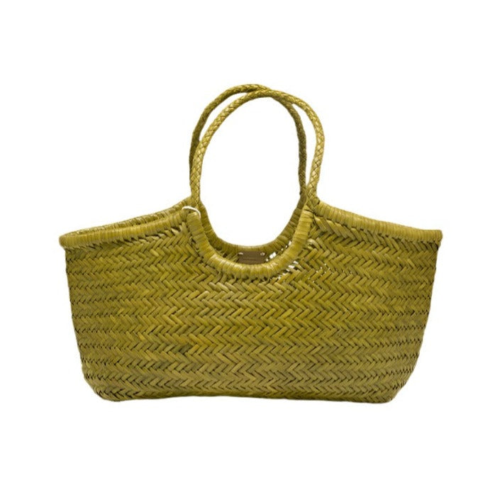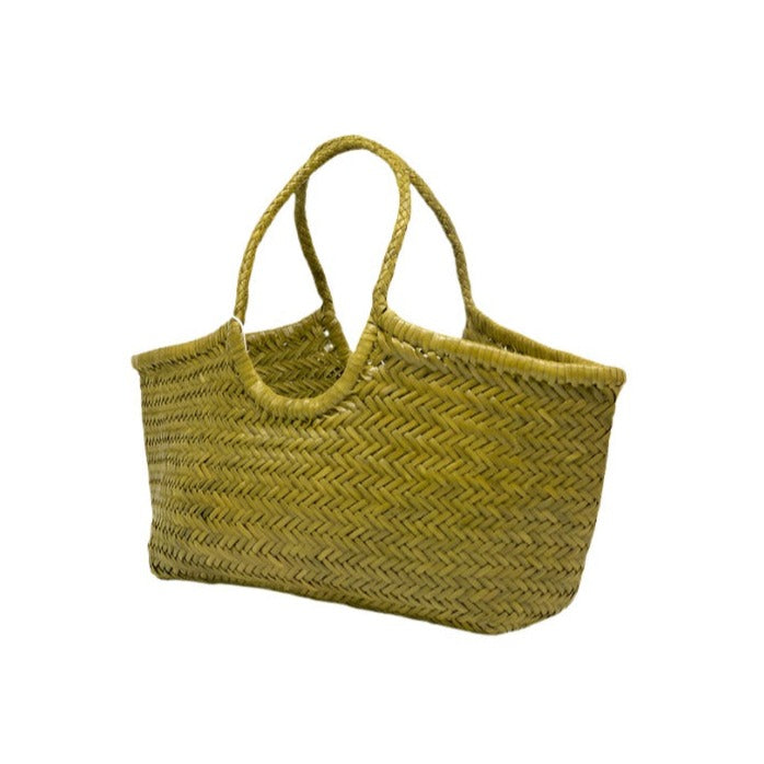 Handwoven in a tight knit from soft buffalo calf leather and complete with braided handles, this roomy, unlined, open-top tote will be the perfect accompaniment to laid-back picnics beneath the summer sun.