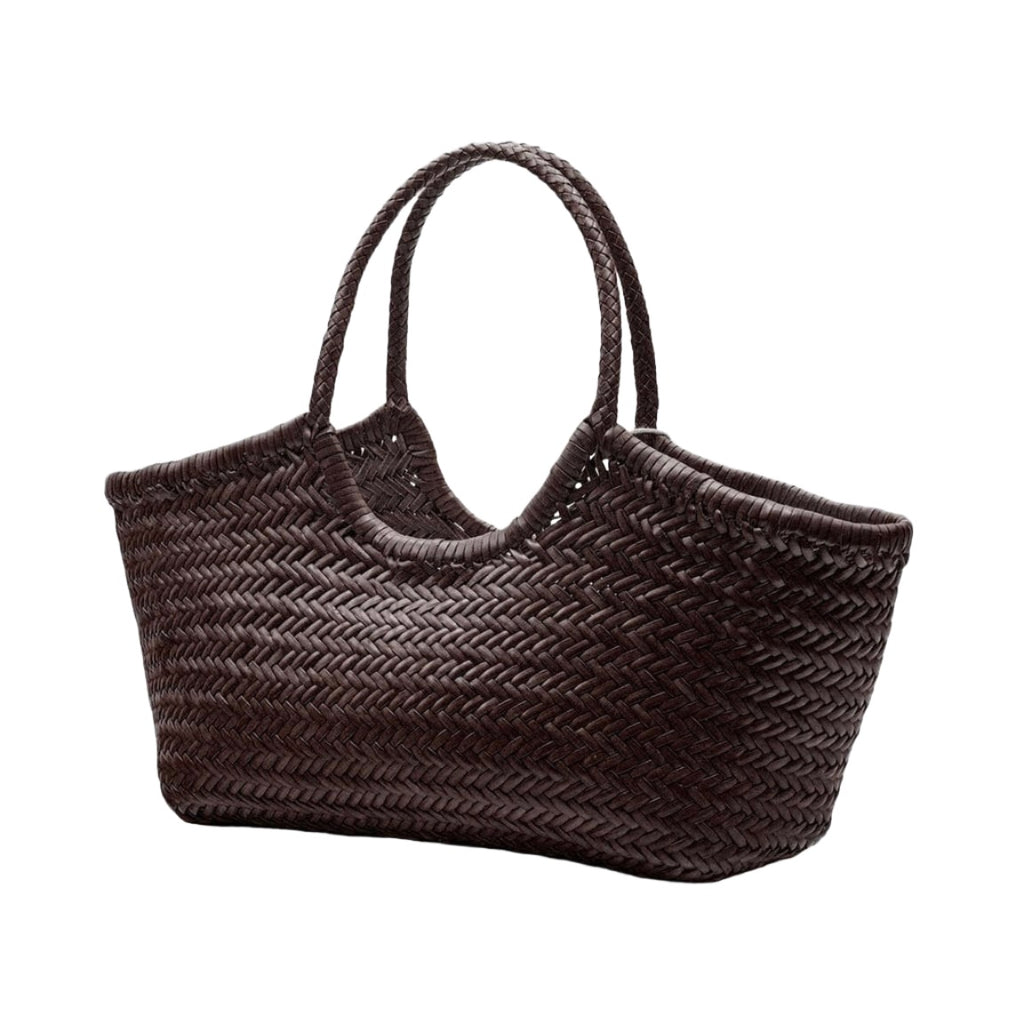 Handwoven in a tight knit from soft buffalo calf leather and complete with braided handles, this roomy, unlined, open-top tote will be the perfect accompaniment to laid-back picnics beneath the summer sun.