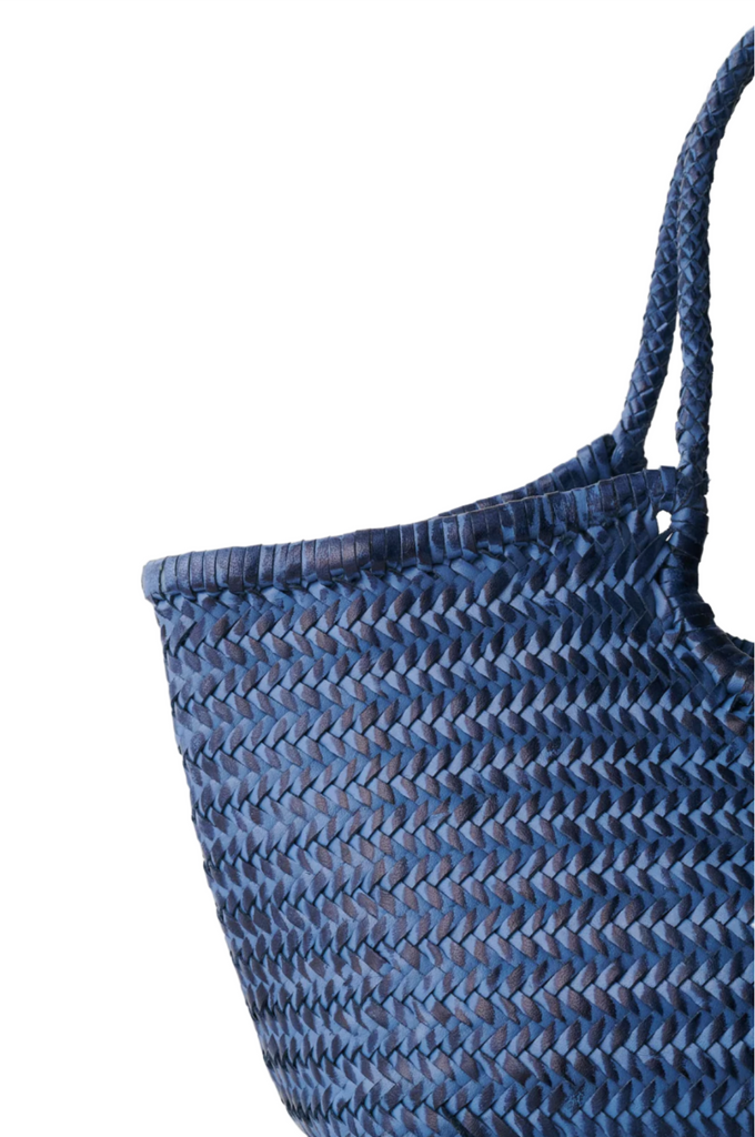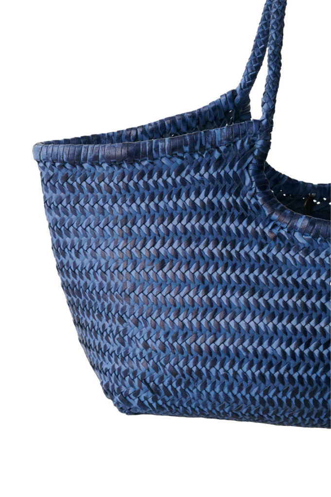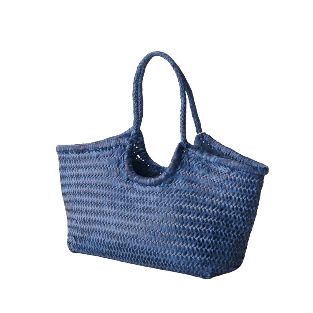 Handwoven in a tight knit from soft buffalo calf leather and complete with braided handles, this roomy, unlined, open-top tote will be the perfect accompaniment to laid-back picnics beneath the summer sun.