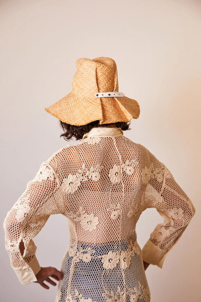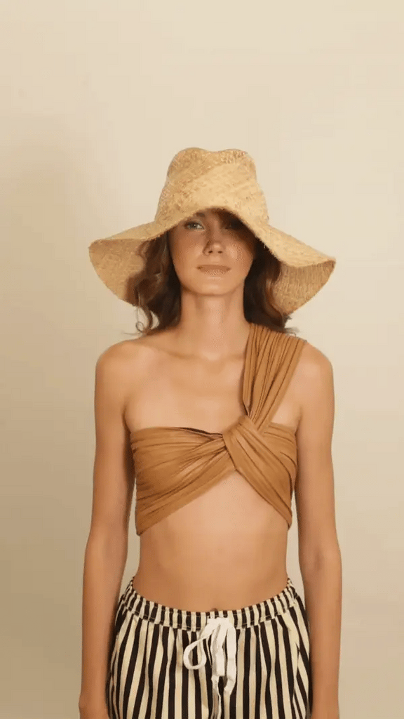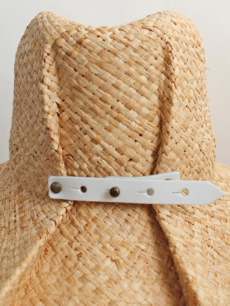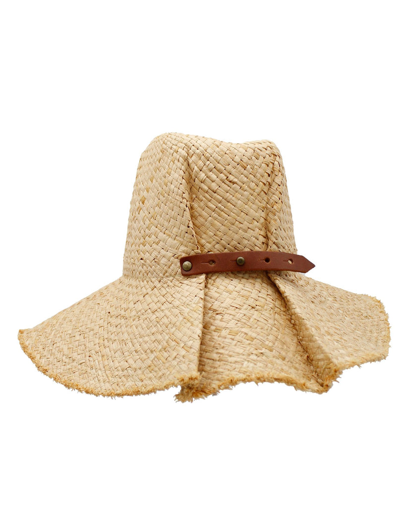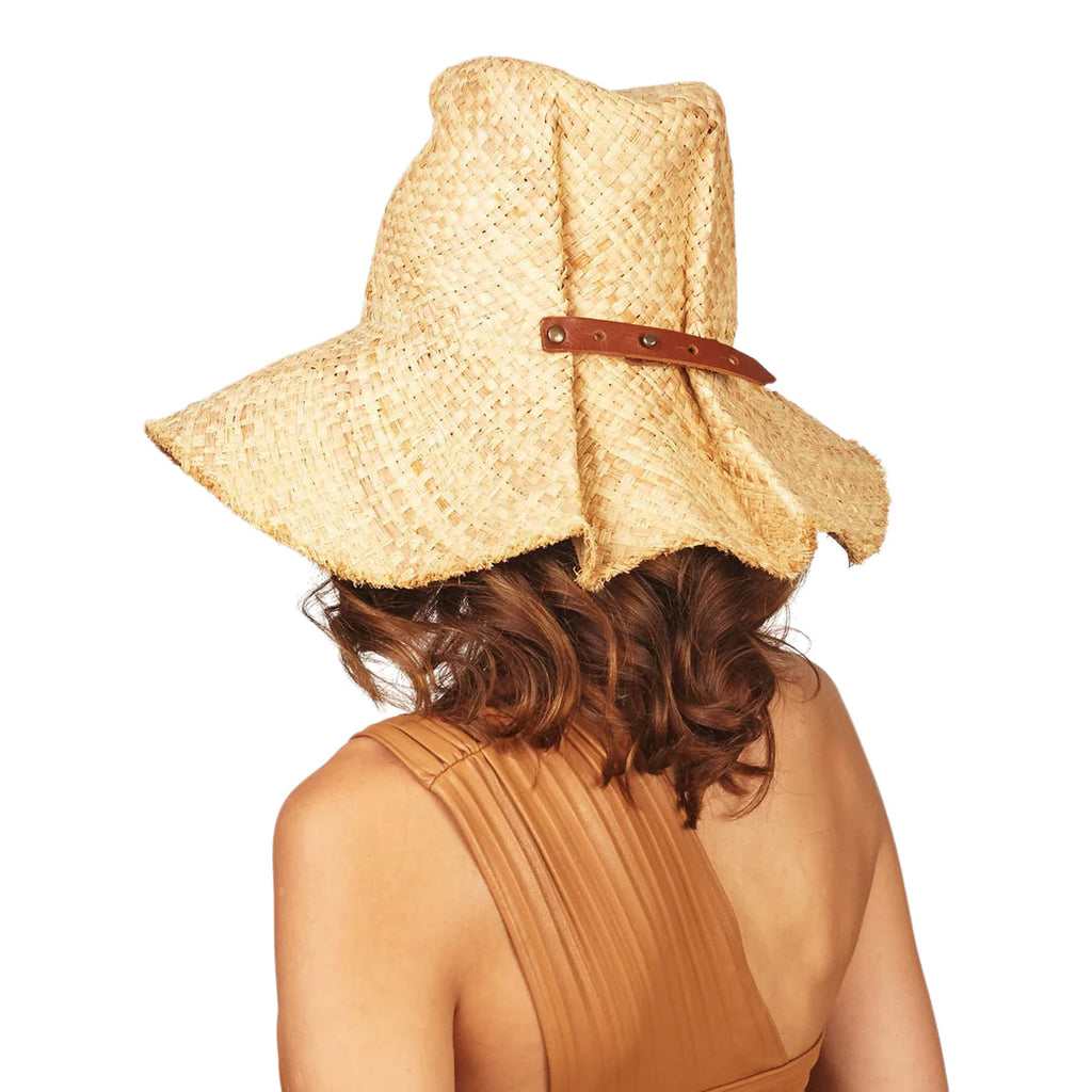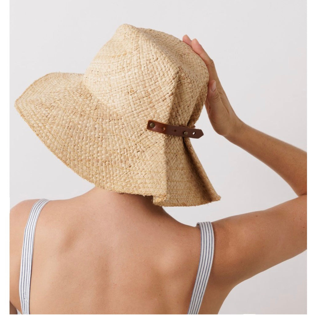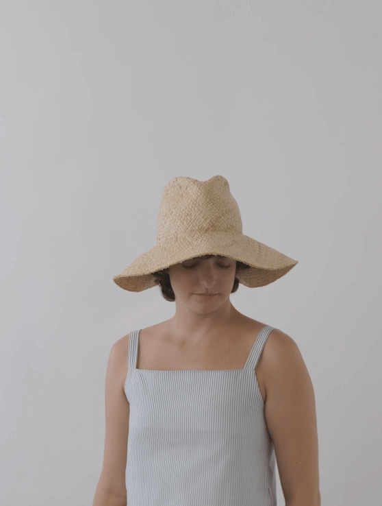 This medium-brimmed fedora travels easily and will stay put on breezy days. The supple raffia straw is secured at the back by a leather tab that adjusts to your size. The perfect hat for biking and the beach!