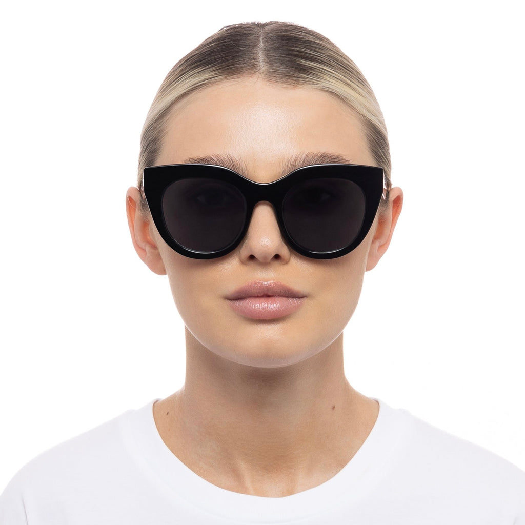 Our iconic AIR HEART silhouette is a favourite of Meghan Markle and Olivia Palermo. With oversized and dramatic proportions reminiscent of a cat-eye, this style is designed with a thick frame and luxurious metal top bar inlay, then fitted with premium zero base smoke flat lenses. The perfect statement sunglass to suit all face shapes.