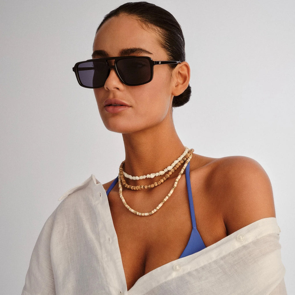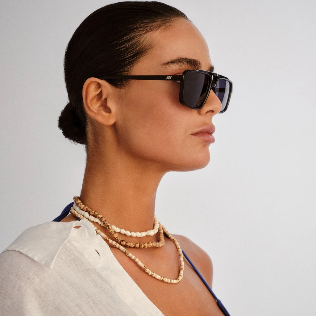 Designed for impact and comfort, LE GARS redefines the aviator silhouette with a bold, structured shape tailored for broader face shapes. This wearable, unisex frame is finished with discreet classic Le Specs flagstripe hardware to its fine temples.