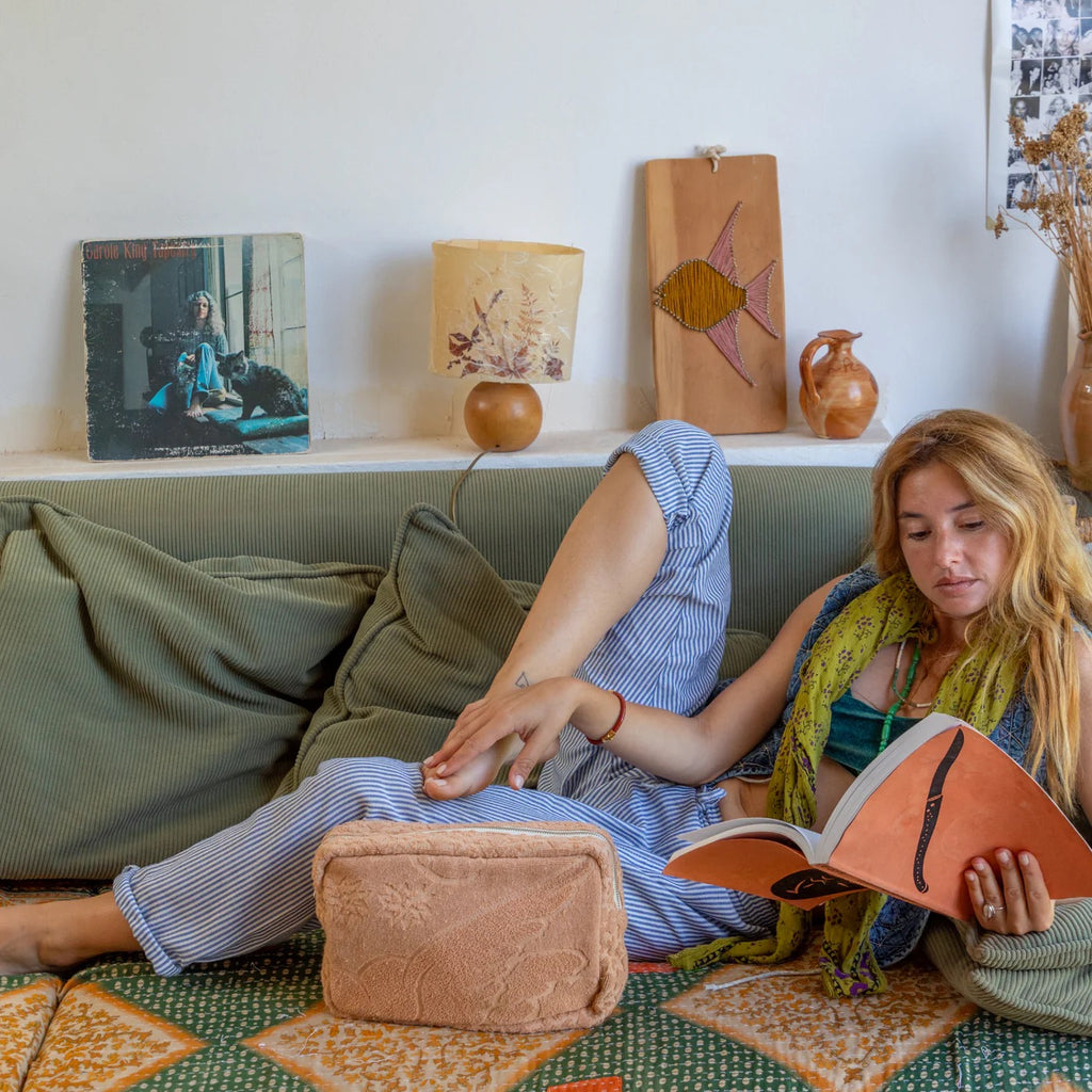 Unisex square clutch with large inside pocket. Washable style but too cool to stay in the bathroom! Beach towel square clutch with inside pocket.