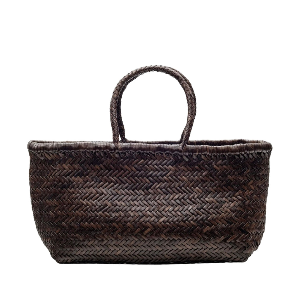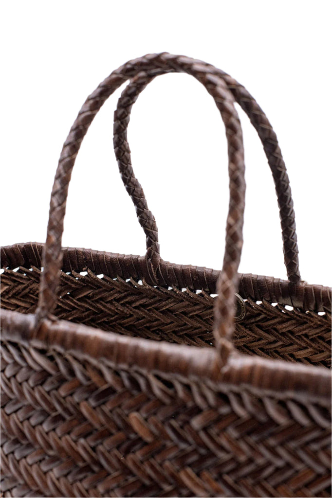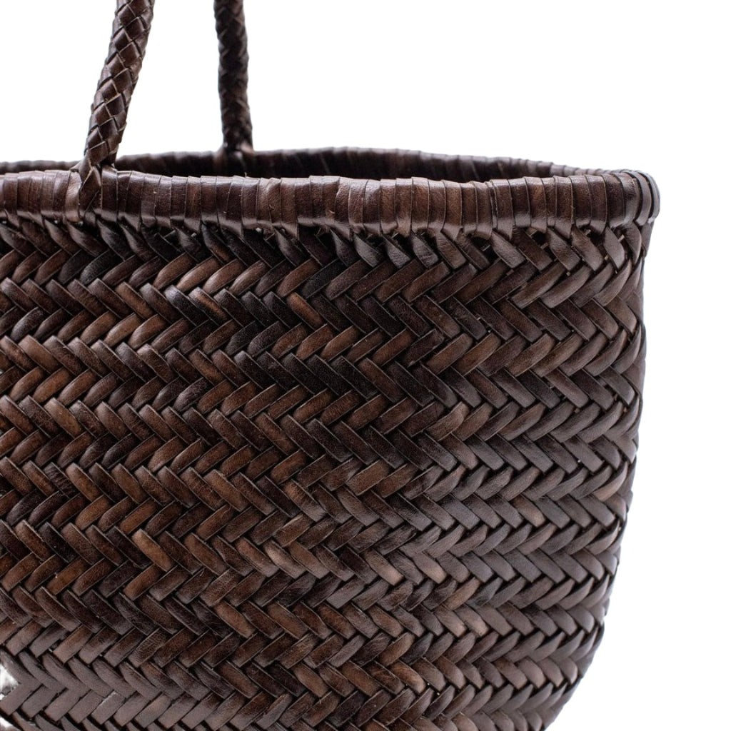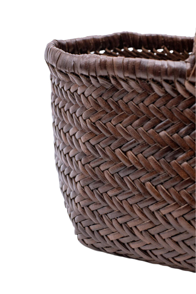 Each bag is entirely handcrafted by a group of skilled artisan leather weavers, using a unique weaving technique that forms its signature basket shape once removed from the wooden mould.