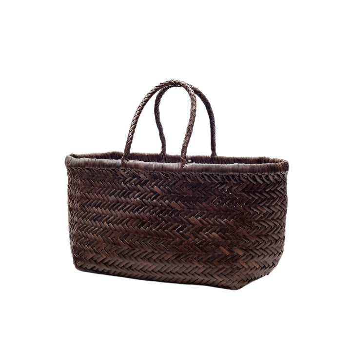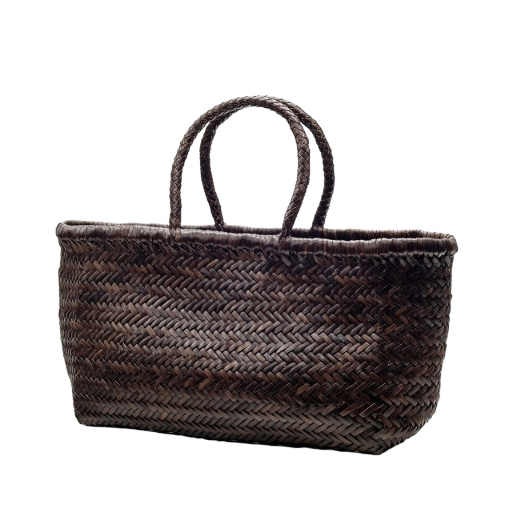This handcrafted process ensures that no two pieces are exactly alike—variations in weave, slight curves, or two-tone color shading are natural features, not flaws. The leather is dyed using natural dyes, which may cause slight color transfer if wet or rubbed.