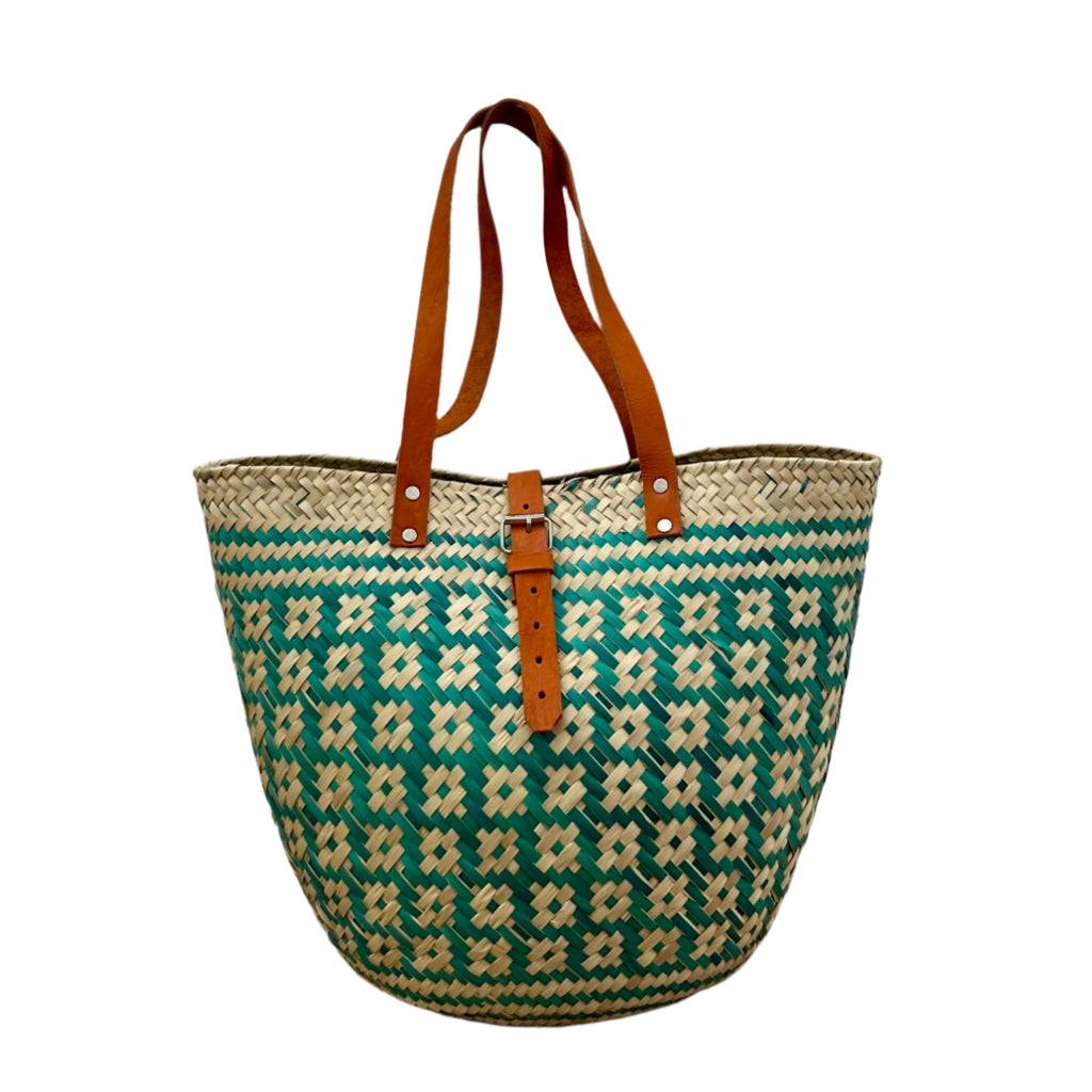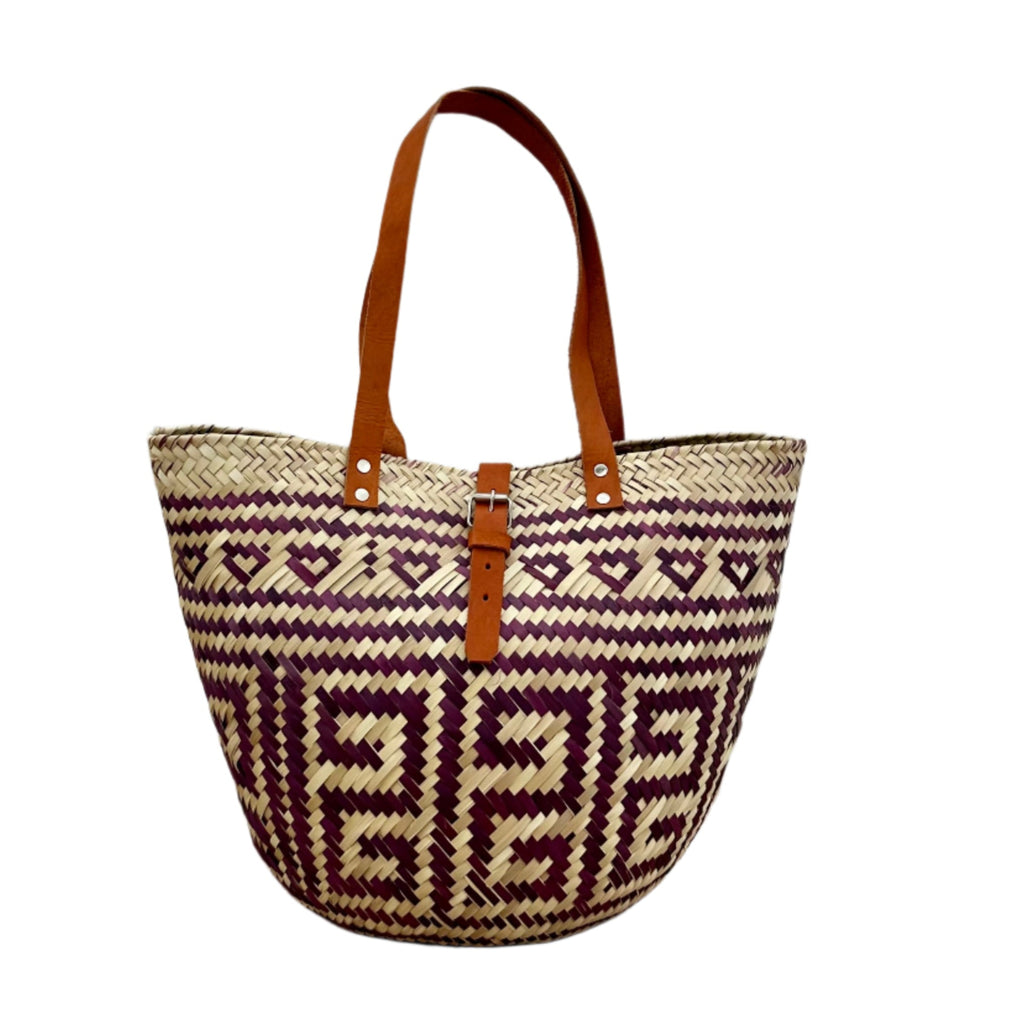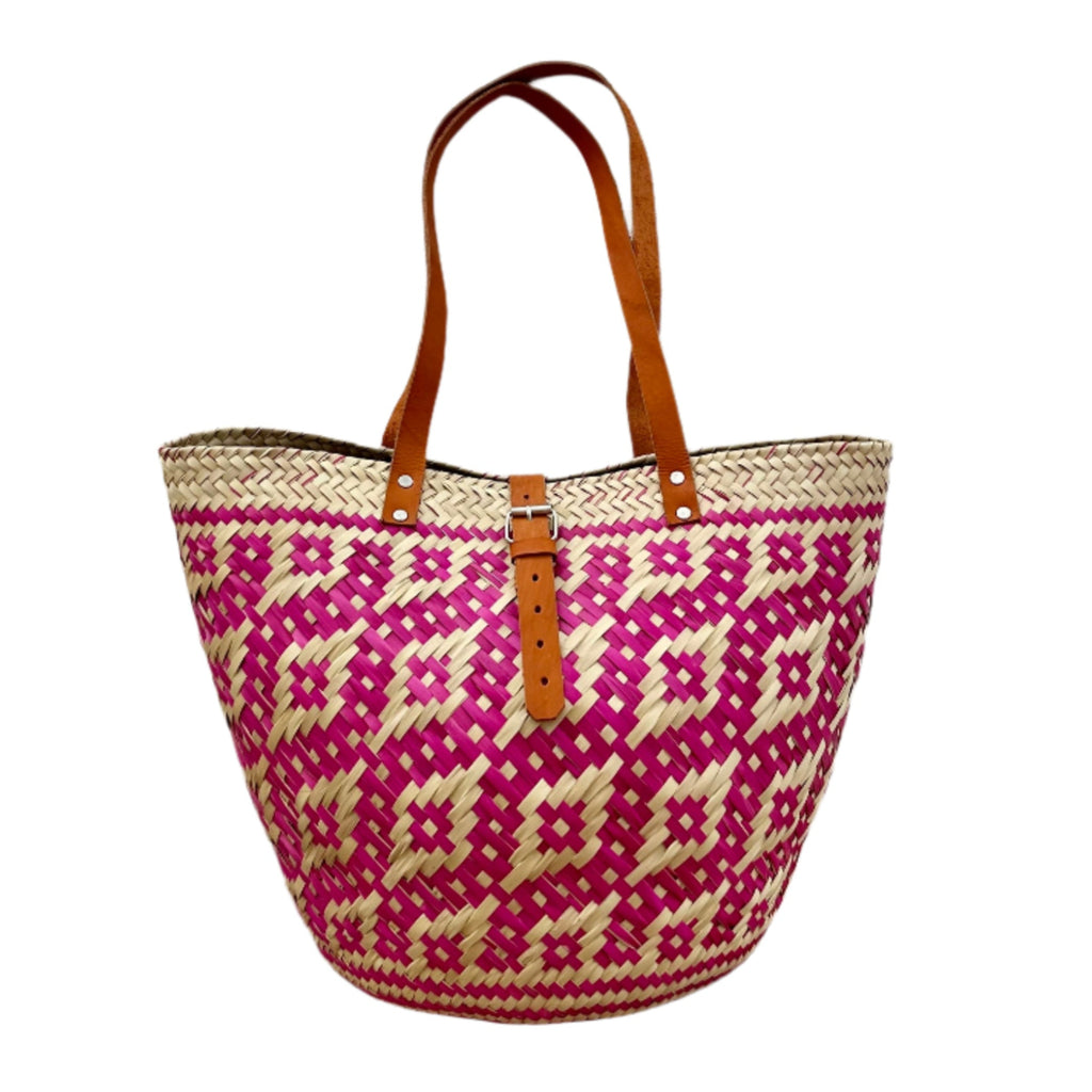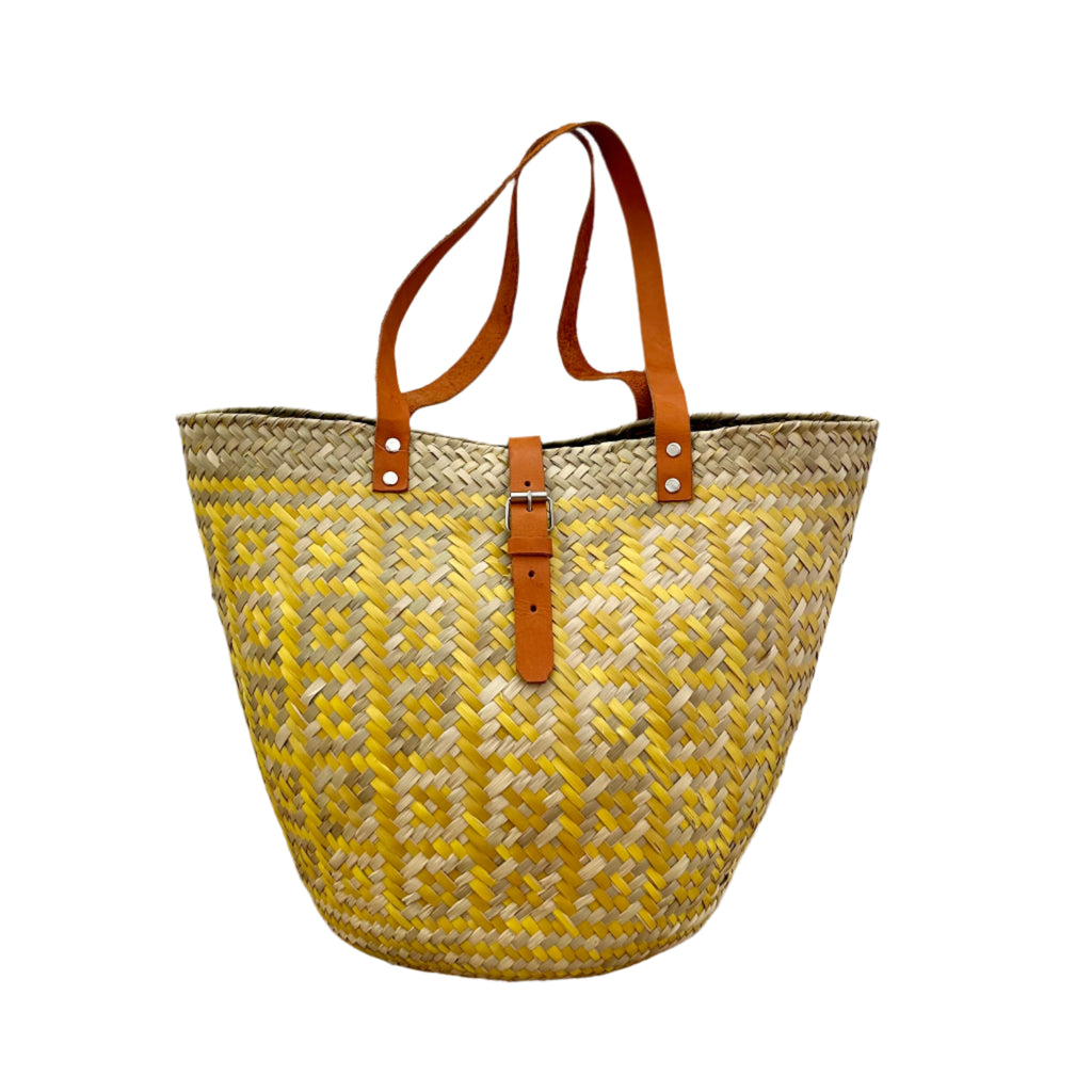 This chic straw bag features a sleek leather handle, blending natural texture with timeless sophistication—perfect for effortless, everyday elegance.