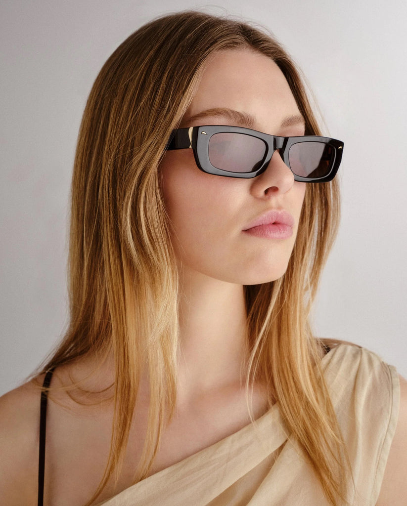 The Tommy is a modern rectangle frame featuring feminine accents of hardware to create a luxe finish. The gold detailing on the front of the frame and temple is inspired by parts of our signature organic L.