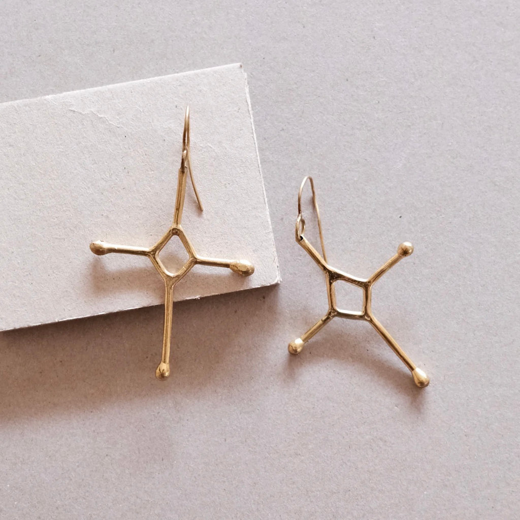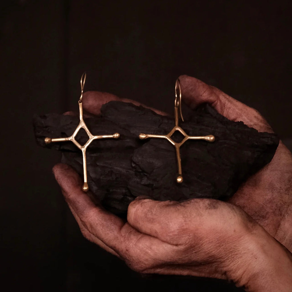 Experience the artistry of our Amazigh Cross Earrings, featuring a diamond center and intricate orb accents in a distinctive cross shape. This simple and stylish design perfectly complements other pieces in our Amazigh Cross collection.