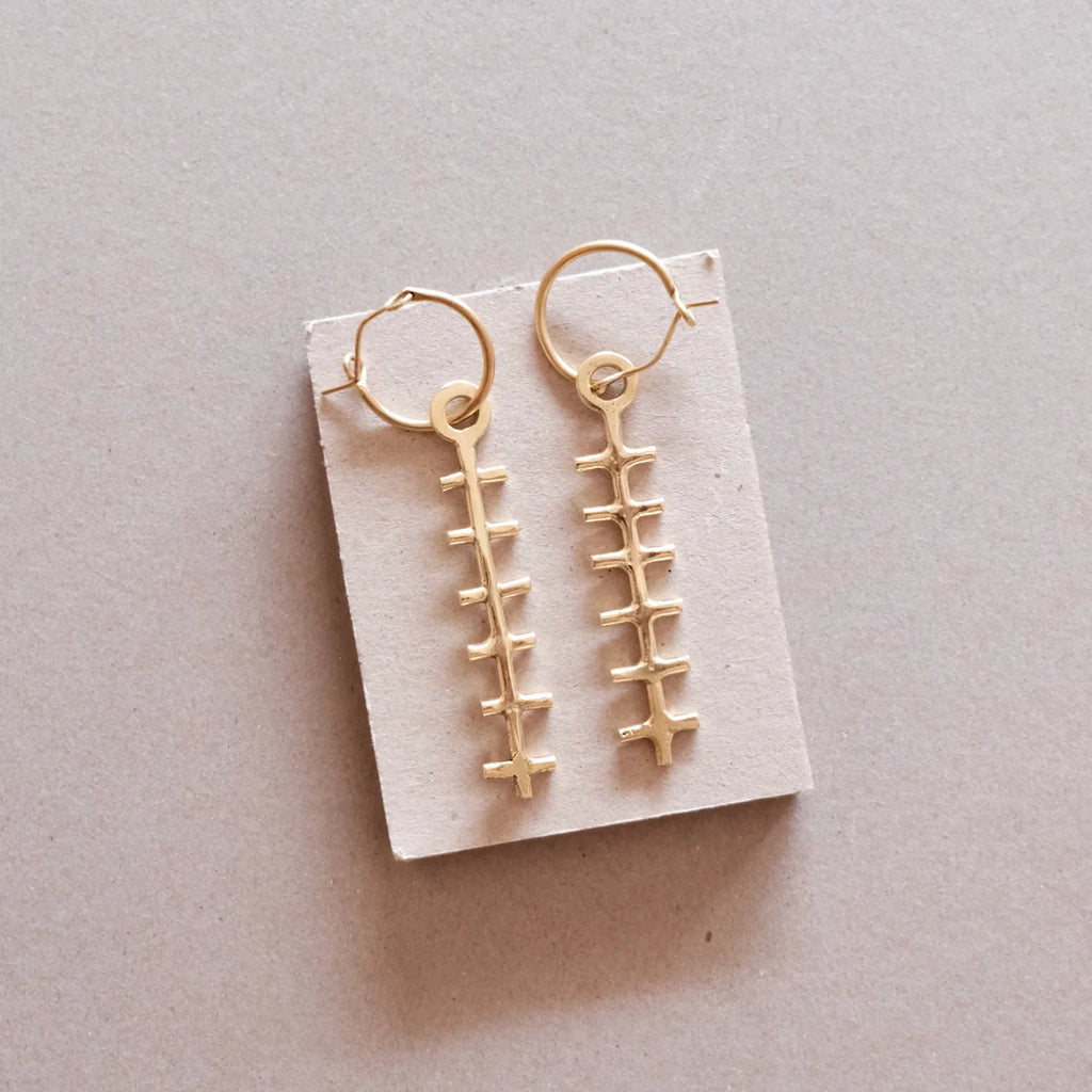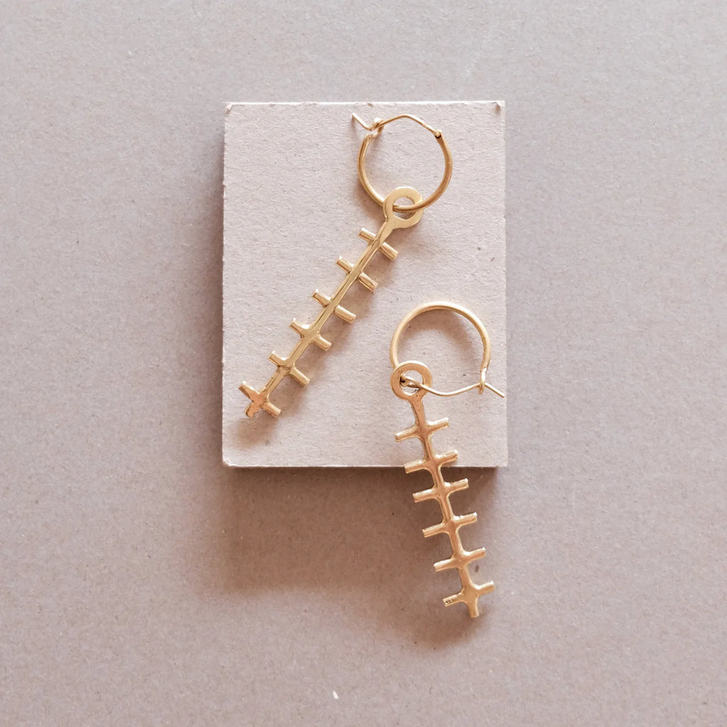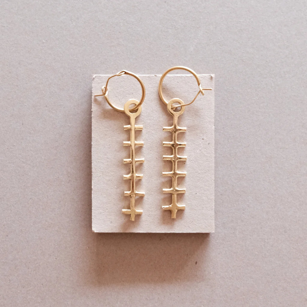 Beautifully handcrafted in Marrakech, these Amazigh inspired, ladder-shaped earrings boast a unique design, representing the saw shape for metal workers in Berber culture. The brass ear hoop adds the finishing touch to these artisan made earrings.