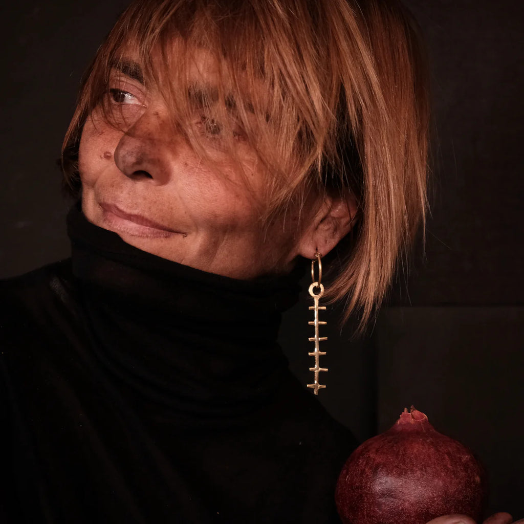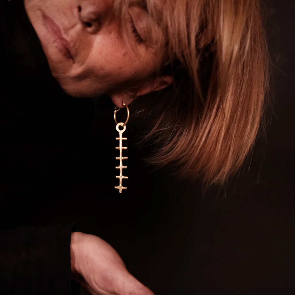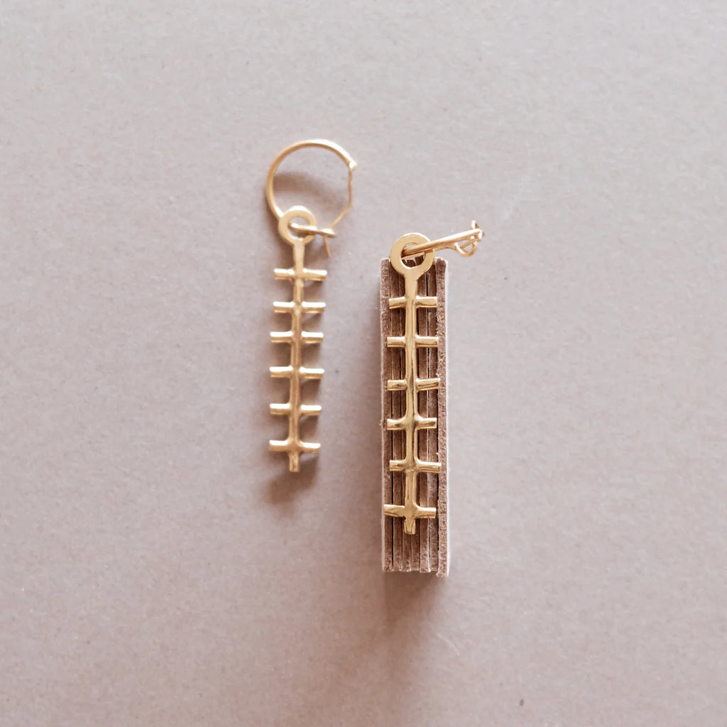 Beautifully handcrafted in Marrakech, these Amazigh inspired, ladder-shaped earrings boast a unique design, representing the saw shape for metal workers in Berber culture. The brass ear hoop adds the finishing touch to these artisan made earrings.