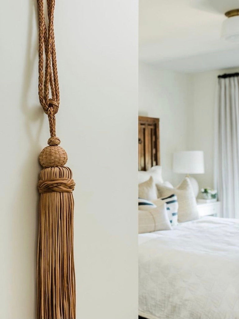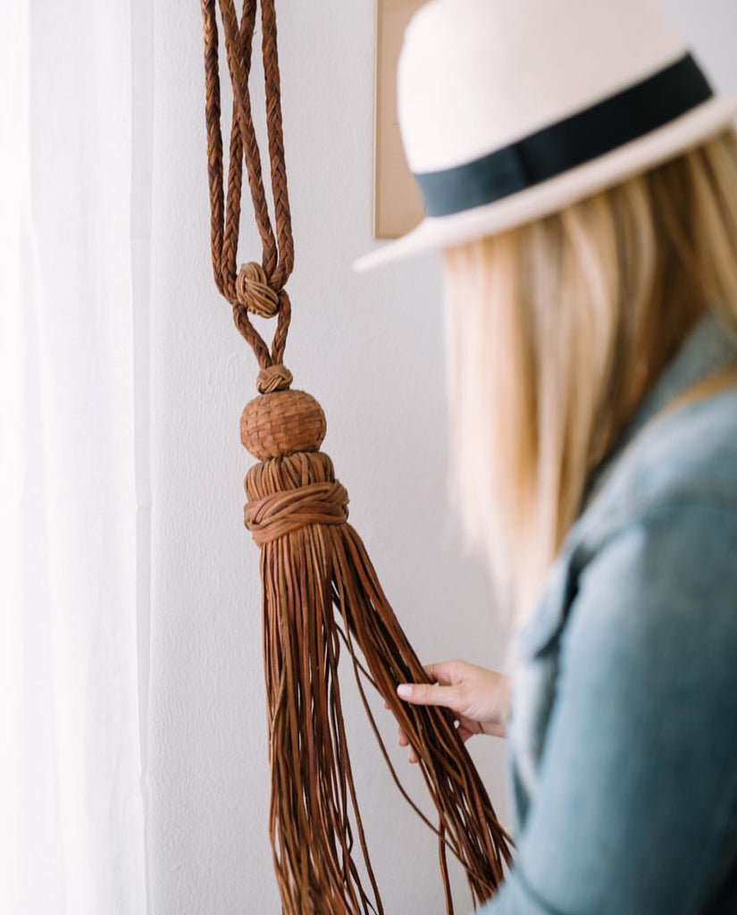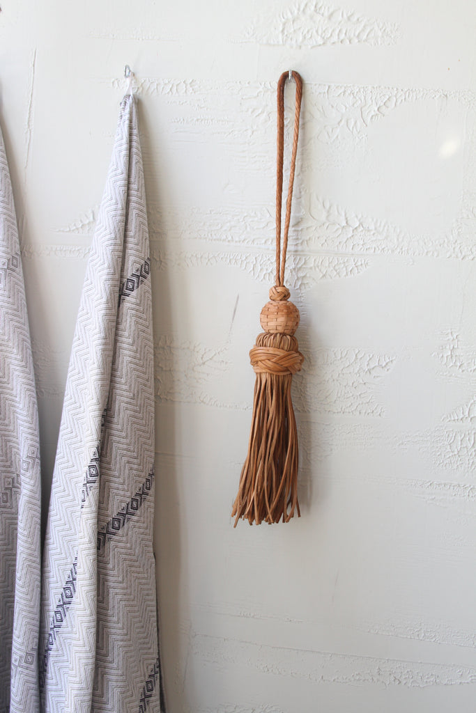 Chunky and robust, these leather tassels are decorative Talismans for your wall. With two sizes in natural, cognac, dark brown, and indigo.