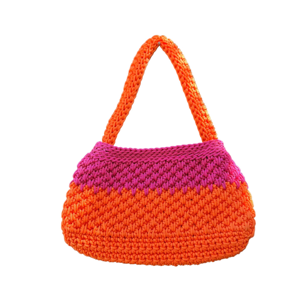 Handmade in Marrakech, our Sunset Crochet Crescent Bag brings together bold color and effortless shape. Woven in vibrant hot pink and orange, it channels the glow of a desert sunset in a chic crescent silhouette. Lightweight, playful, and perfectly sized for day or night — a joyful statement from the souks to the sea.