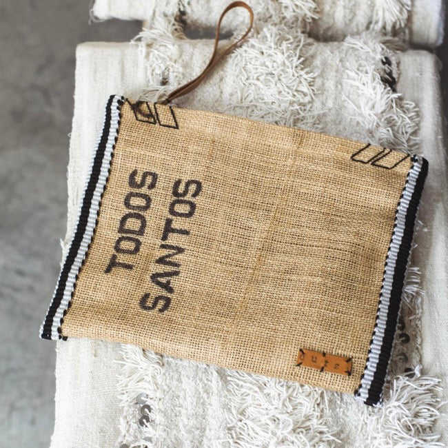 Todos Santos Vintage Burlap Pouch with Metcal Side Trim