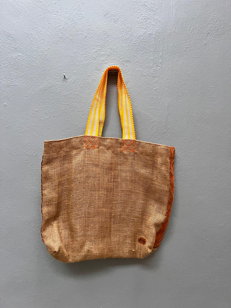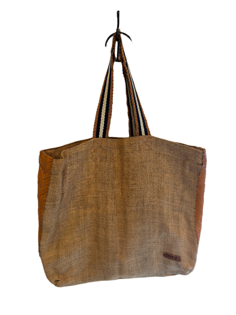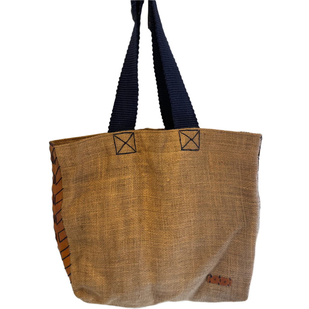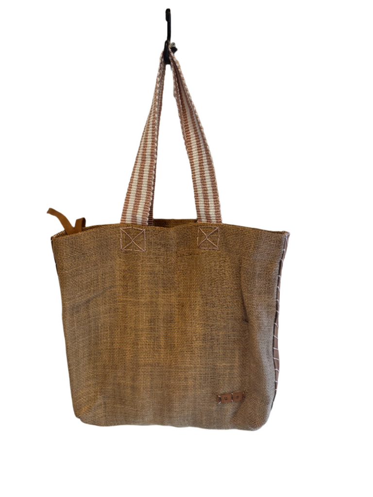Vintage Burlap Tote with cotton lining with interior pocket.