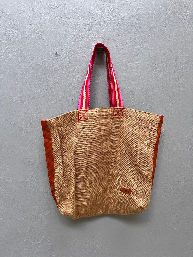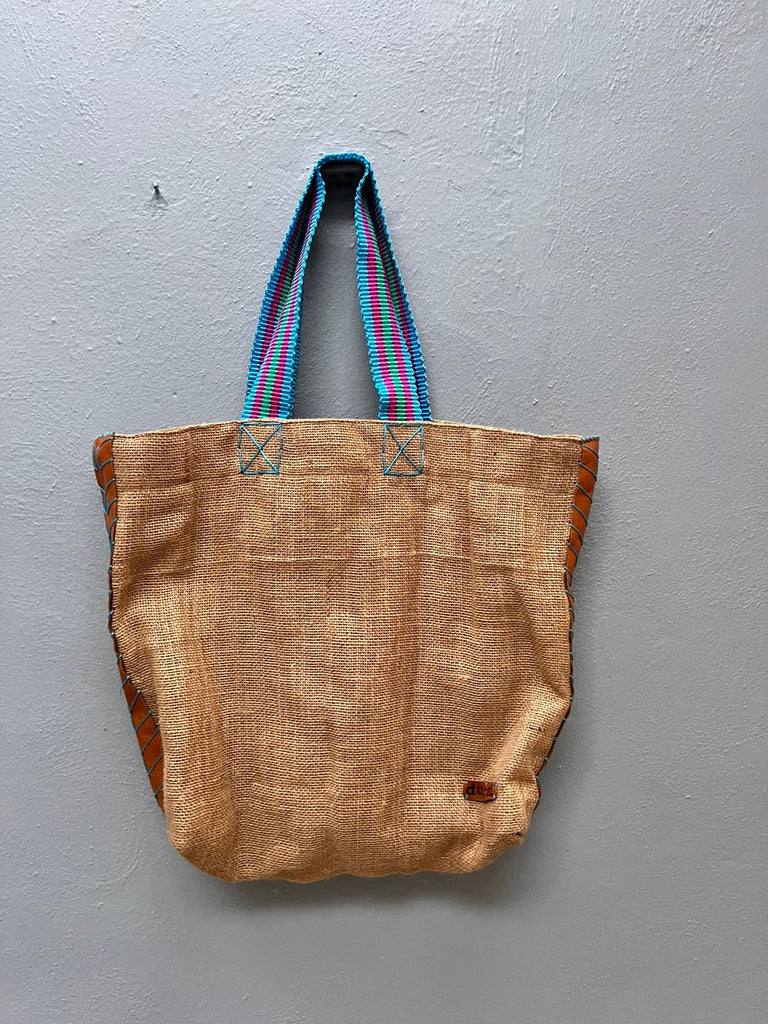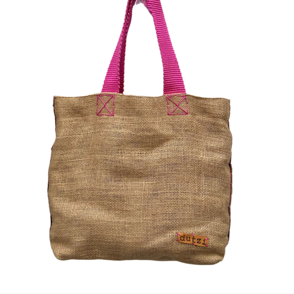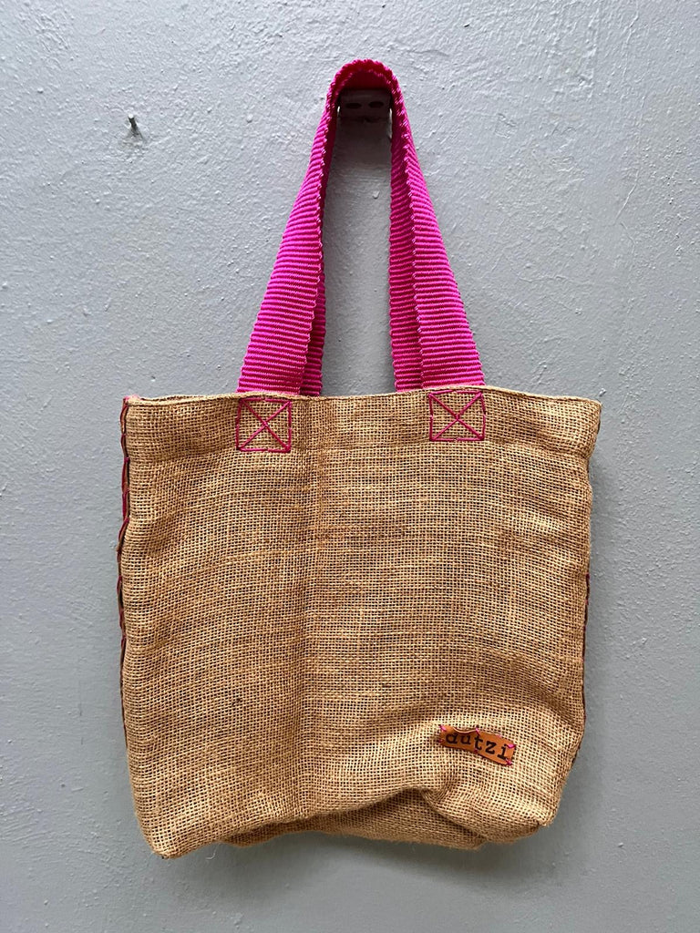 Vintage Burlap Tote with cotton lining with interior pocket.