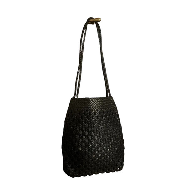 Carre Leather Mesh Bag | Black