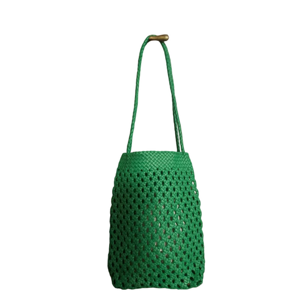 Flat Leather Mesh Bag | Green