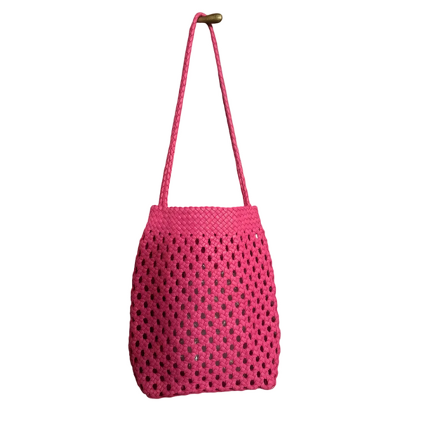 Flat Leather Mesh Bag | Hot Pink