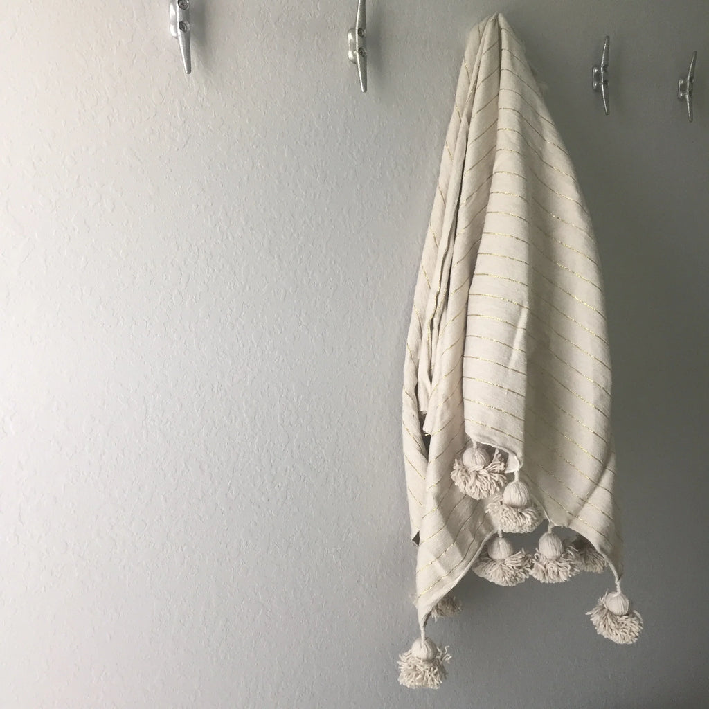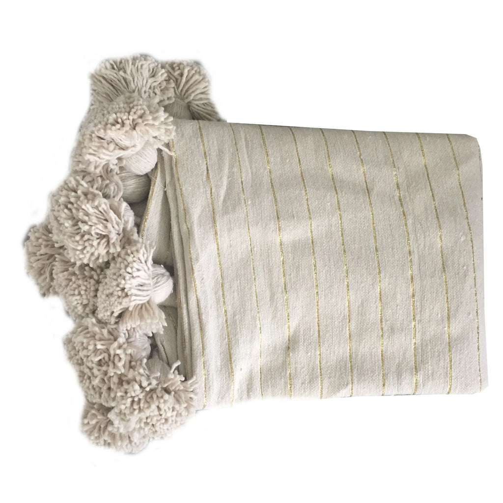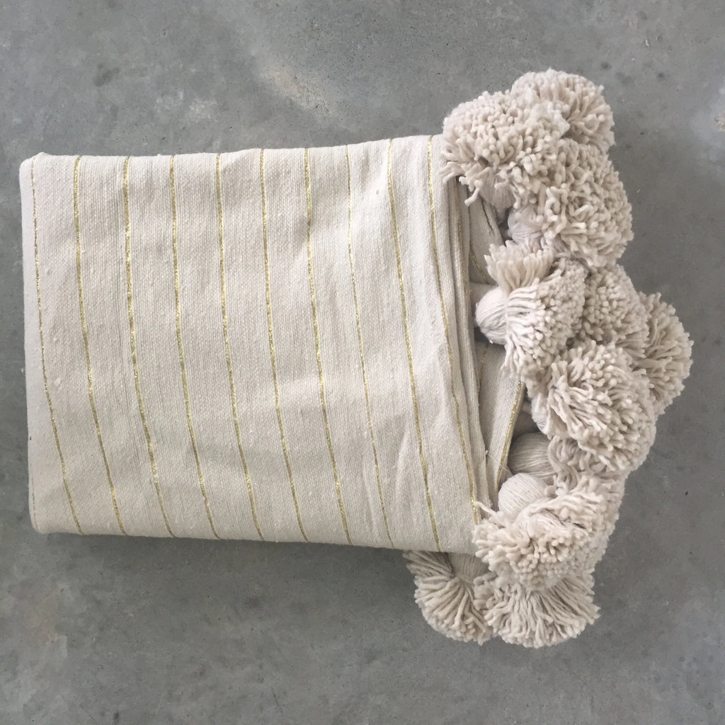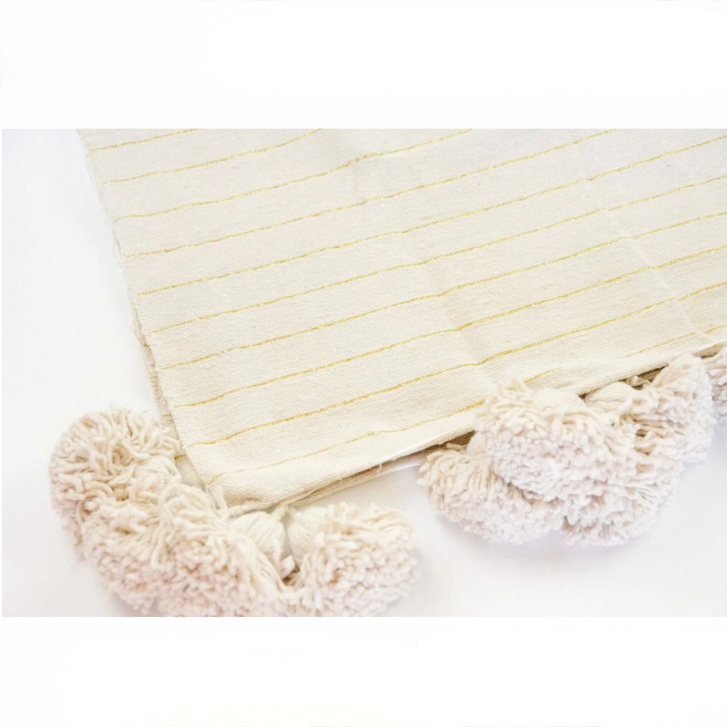 Iris Blanket | Cream/Gold w/ Cream Poms