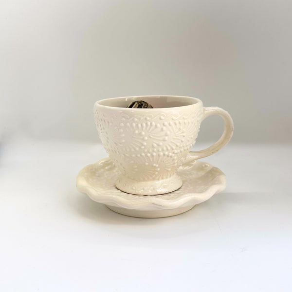 Talavera Cup & Saucer | Ivory