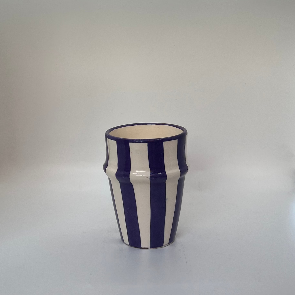 Crafted in Morocco, this striped beldi cup combines traditional design with modern flair—its hand-painted lines and organic form make it ideal for serving tea, espresso, or decorative display.