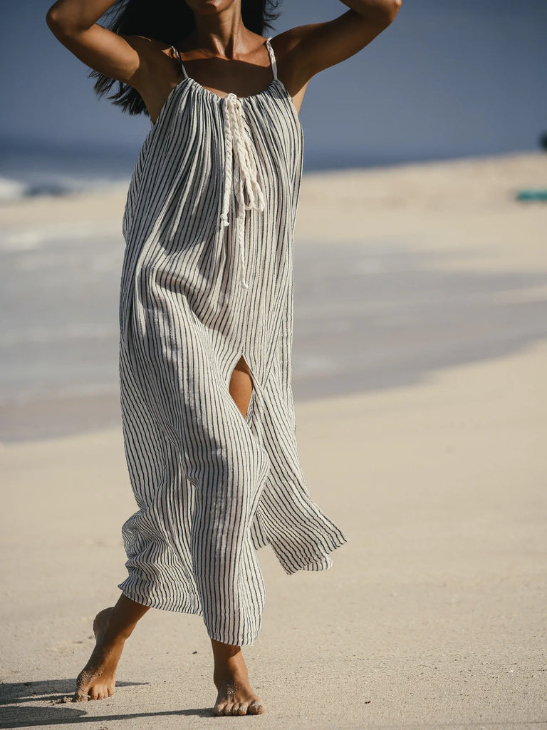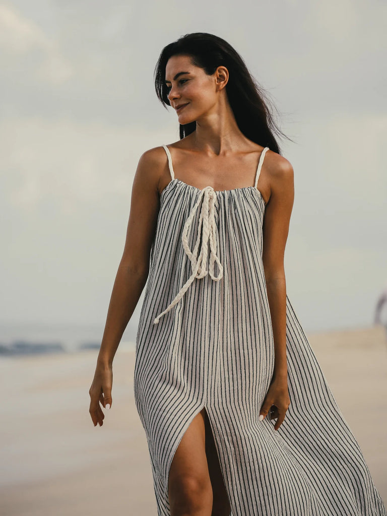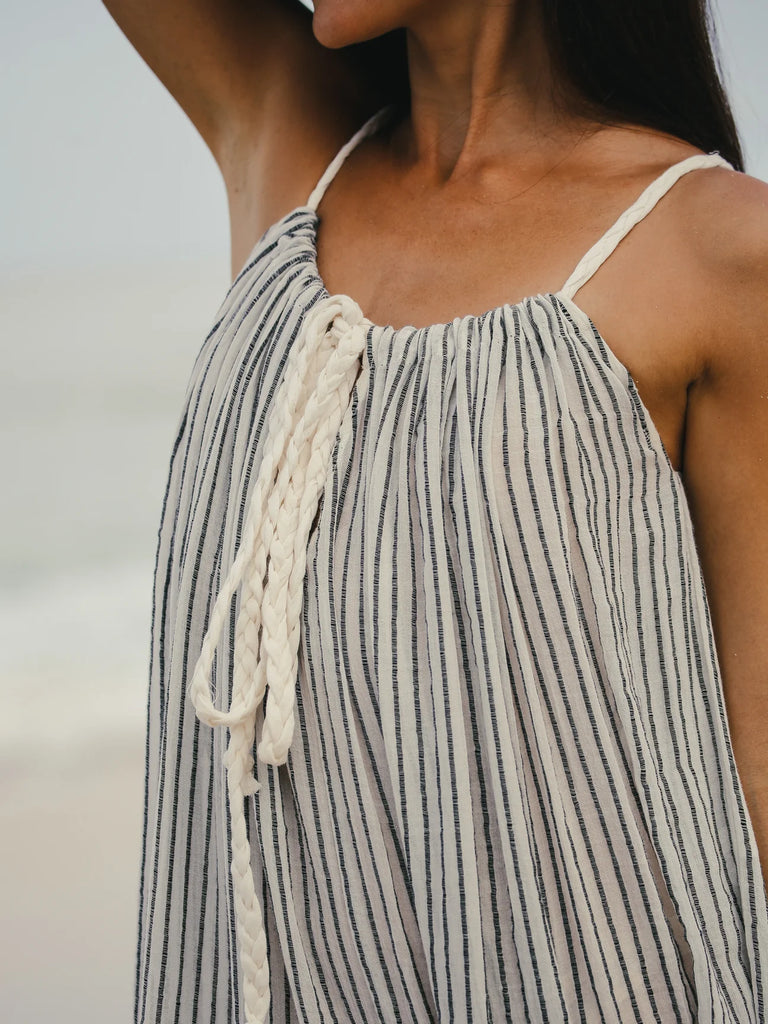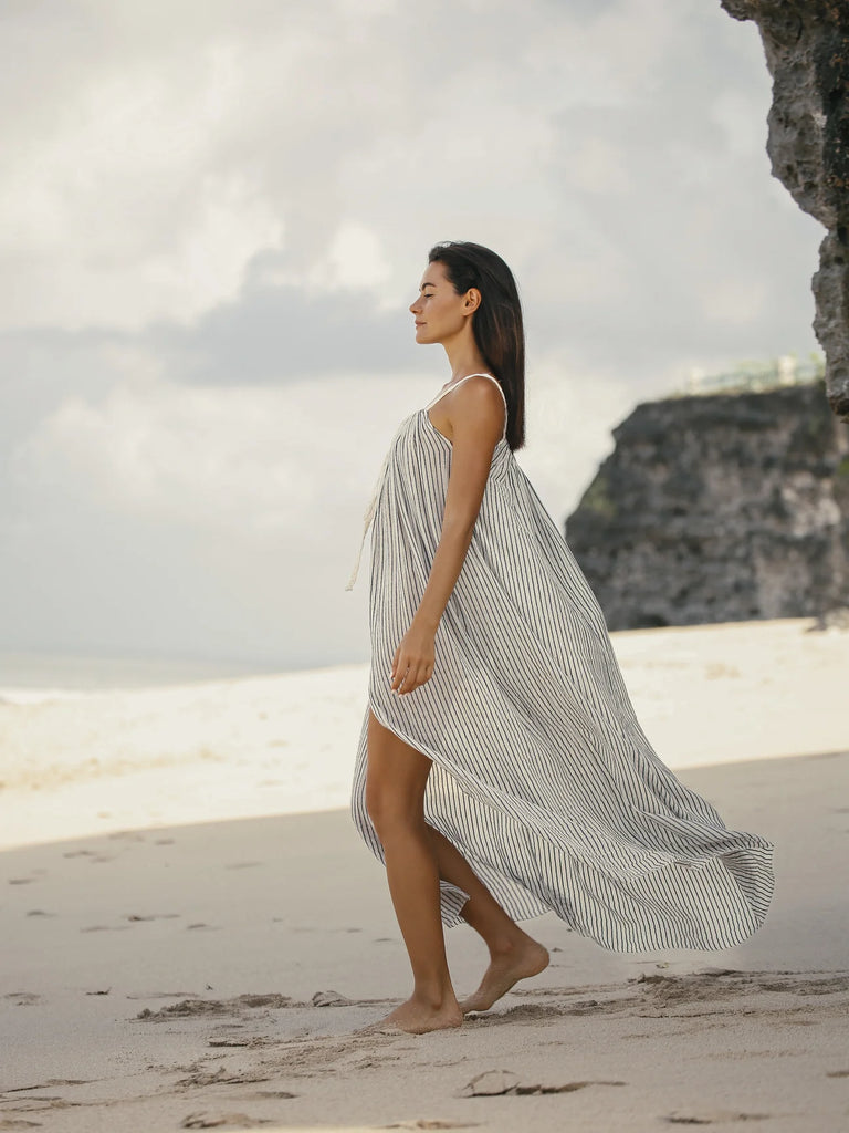 This beach cover up features braided adjustable straps and can be worn in many different ways to have the desired boho-chic look. Have a fancy drink or lounge in this beach cover up. It is a must-have vacation dress for this summer.