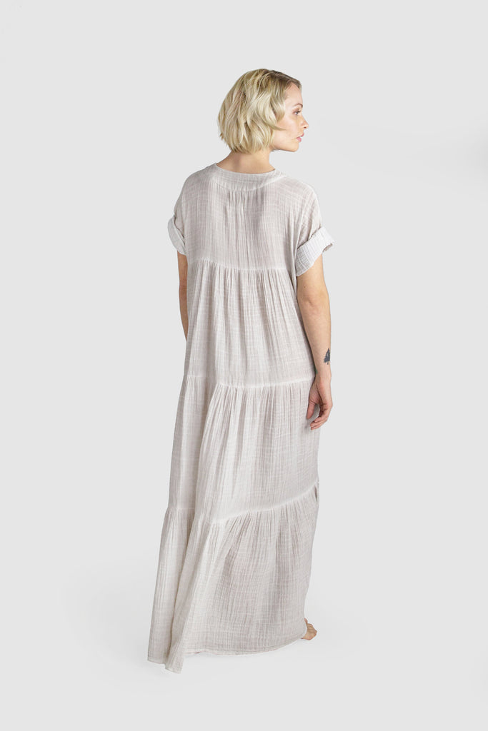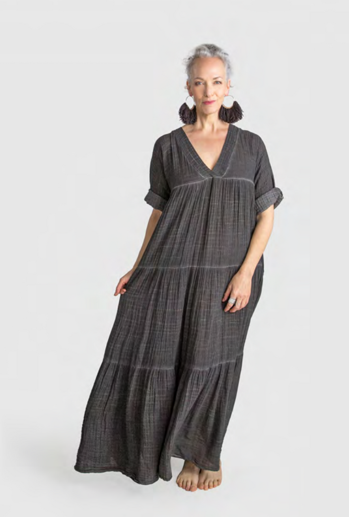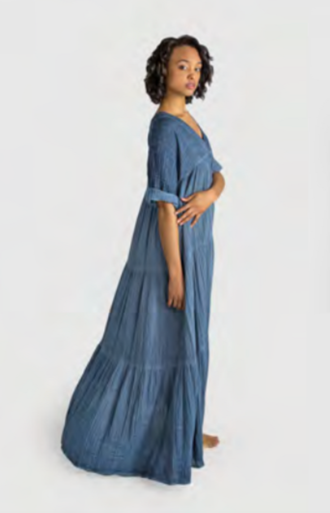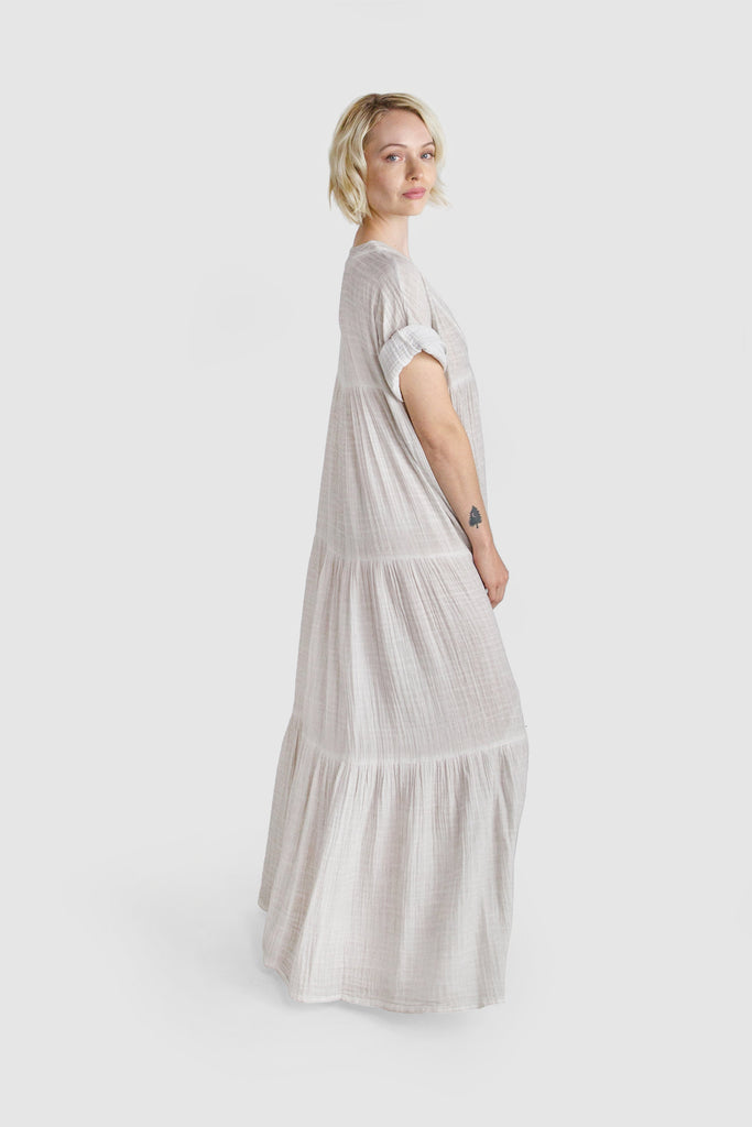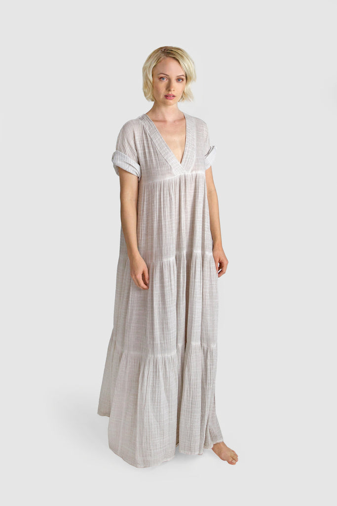Effortless and beautifully draped, our Santa Fe Dress is endlessly versatile. Crafted in a billowy, soft 100% cotton crinkled double voile, this go-to dress features a deep V-neck, tiered skirting, and fluid three-quarter sleeves. From city life to a weekend in the country or at the beach dress up this piece with statement earrings and heels or dress down with a chic hat and sandals.
