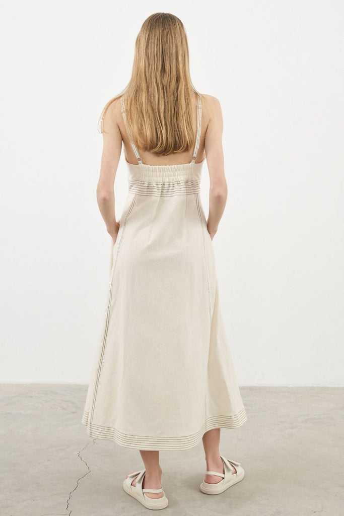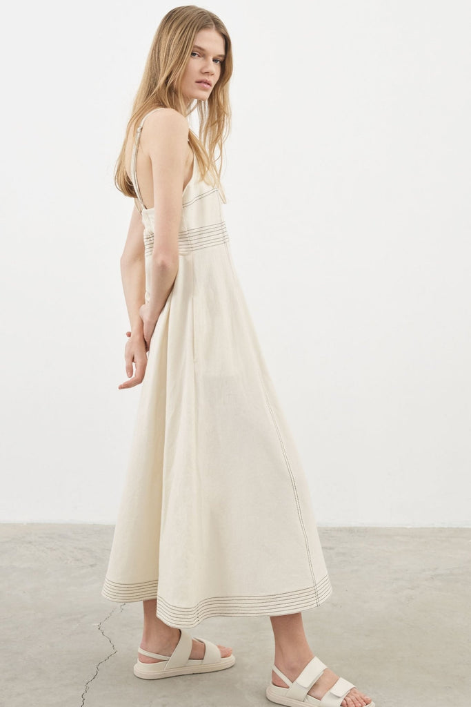 Designed to bring a statement to your summer, the Eva Maxi Dress features a slim fit style with a maxi hemline and V shaped neckline for a clean and streamlined silhouette. Crafted from 100% Turkish Cotton, the Eva Maxi Dress cascades along the body with stitch detail which accents movement on the fabric. Made for slipping on with ease, The Eva Maxi Dress is a minimalist elegant favorite piece.