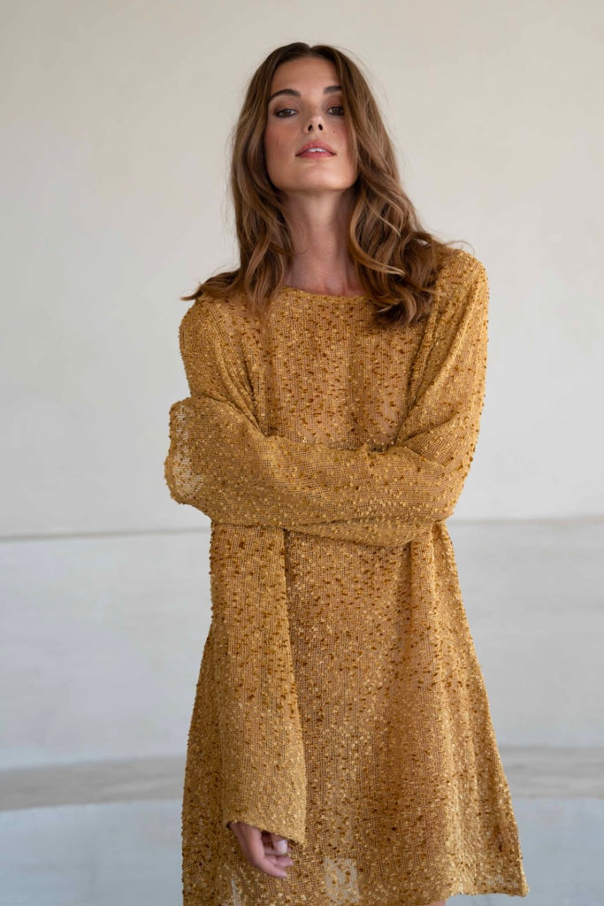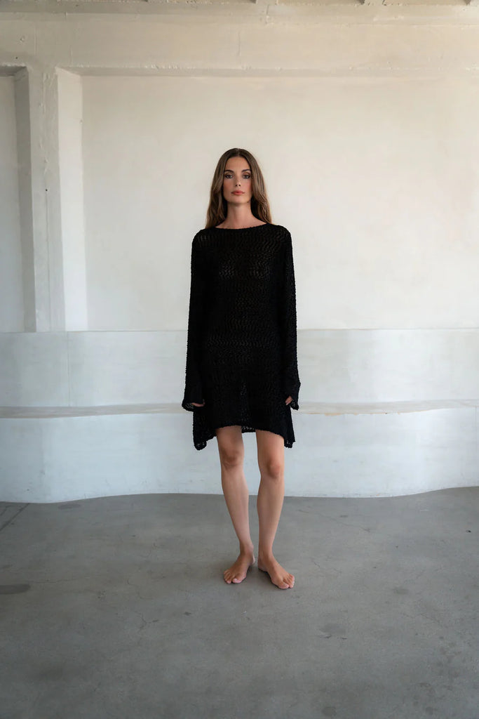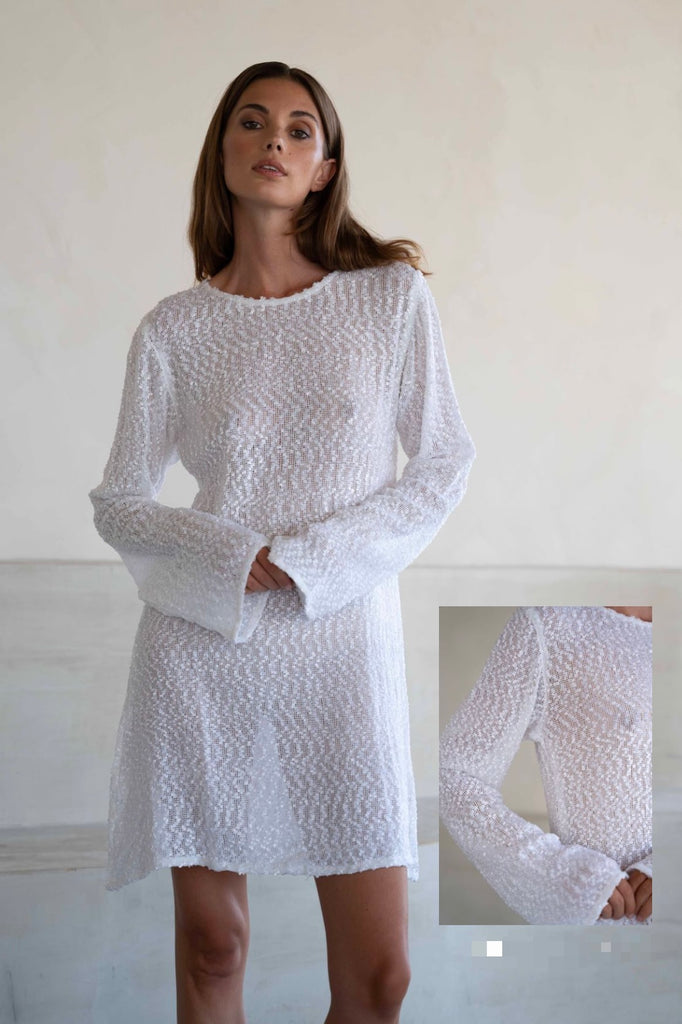 The Jagger mini is crafted from a uniquely textured, semi sheer knitted cotton. Evoking the feeling of summer, to be worn simply as a coverup or dress with a pair of sandals or bare feet.