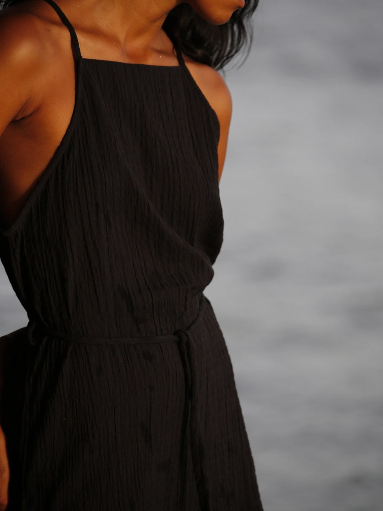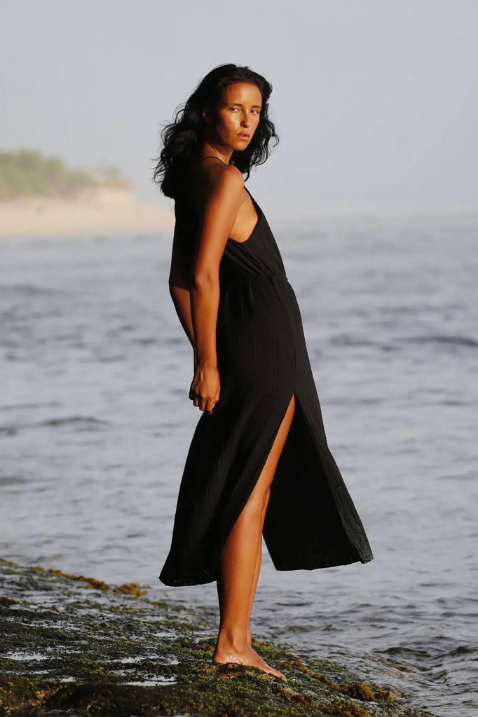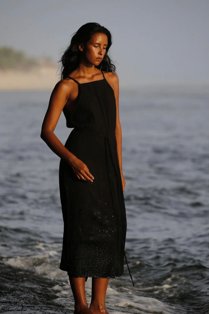 The Siesta Dress is the perfect summer dress that will leave you wanting to dance on a tropical beach barefoot. A seamless blend of comfort and style in an airy summer ensemble, it is meticulously crafted from stretchable 100% Turkish cotton. The dress boasts a square neck, an adjustable waist spaghetti belt, fixed delicate spaghetti straps, and a relaxed fit. Side seams on both sides - 22.8" slit (58cm). Effortlessly slip into this wardrobe essential for an elevated yet relaxed look.
