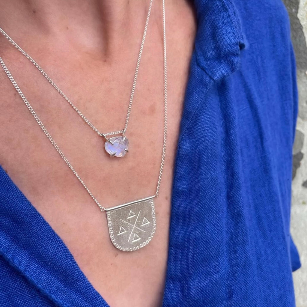 The charms in this collection are made of silver and set on silver 0.925 chains and findings. Designed to protect our metaphysical hearts.