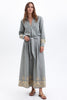 This embroidery features geometric, symmetrical patterns that resemble the pyramids. The pyramids were considered a stairway for the pharaoh's ka to reach the heavens, referring to the ancient mound of creation .
