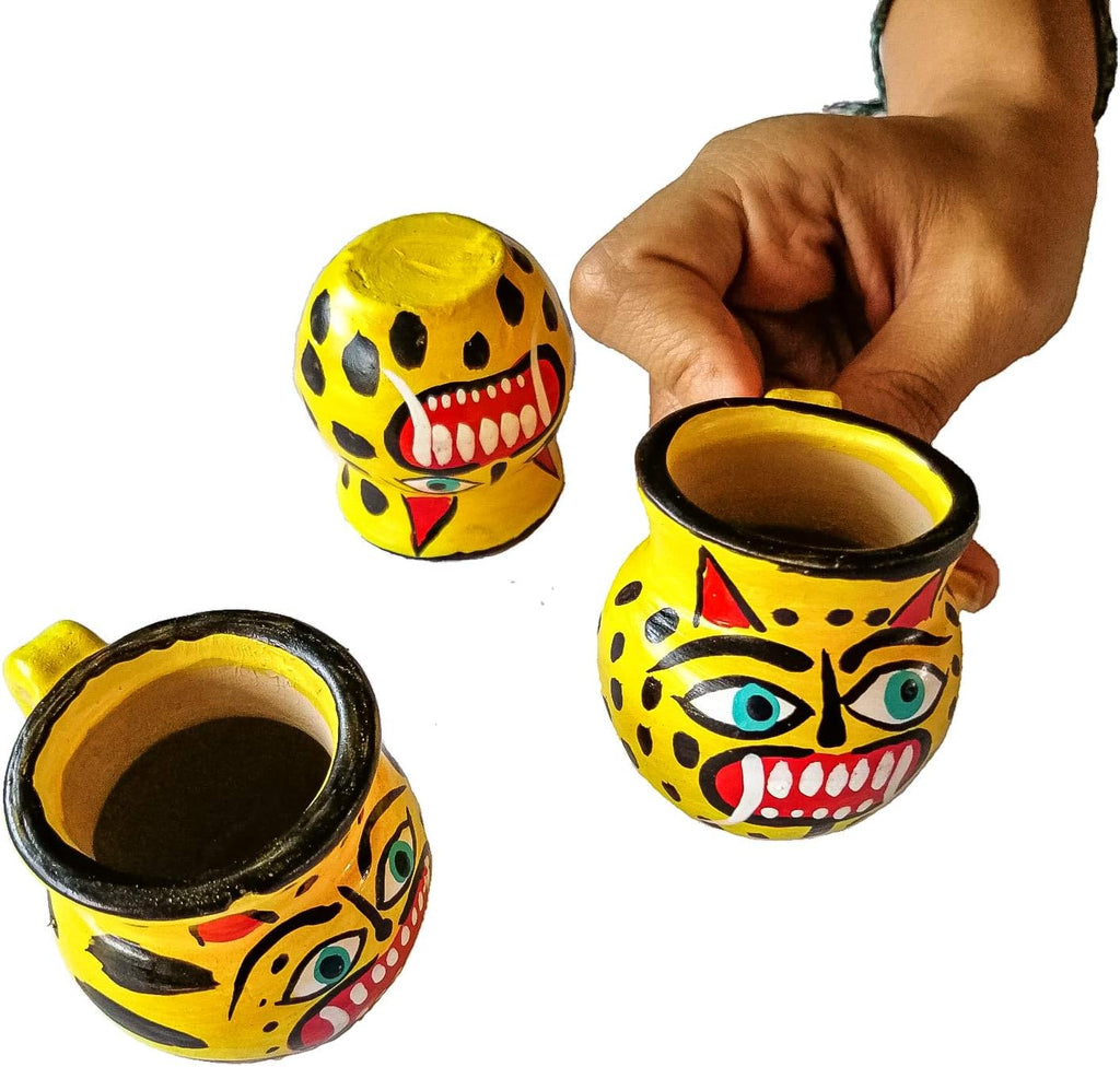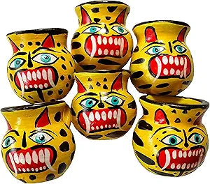 Jaguar Design Mexican Shot Glasses – Handmade Clay Jarritos Set for Tequila and Mezcal.