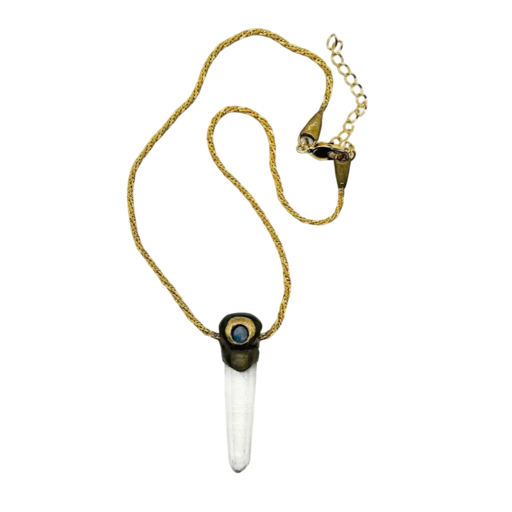 Lemurian Quartz Crystal And Blue Moonstone Necklace