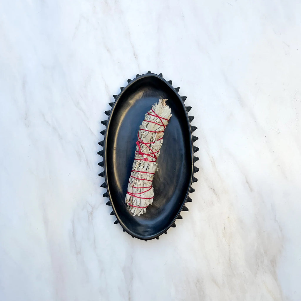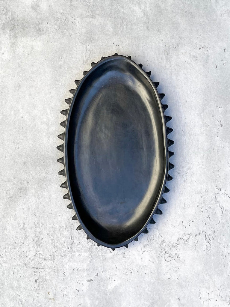 A style of pottery unique to Oaxaca, barro negro is distinguished by its color and silvery finish. It's origins date back centuries and the color is derived not from dye or glaze but from the use of special, locally-sourced clay. Every piece is hand-polished which results in its sultry sheen.