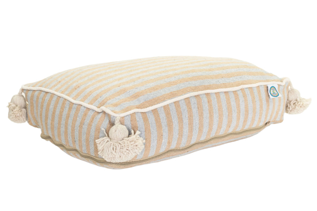 This stylish and fun pet bed is the perfect size for your puppy (check dimensions to be sure it will work for your own pet). The Organic Cotton handwoven cover is completely removable to for convenient machine washing.