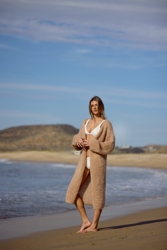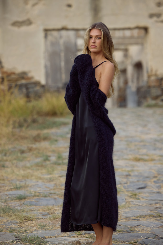 The Cindy XL mohair cardigan is a cozy and stylish knitwear piece crafted from luxurious mohair, featuring a timeless design with a comfortable fit.