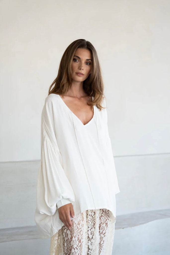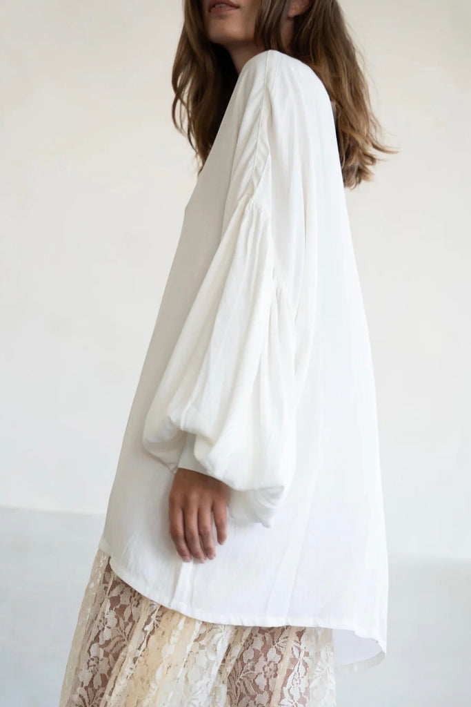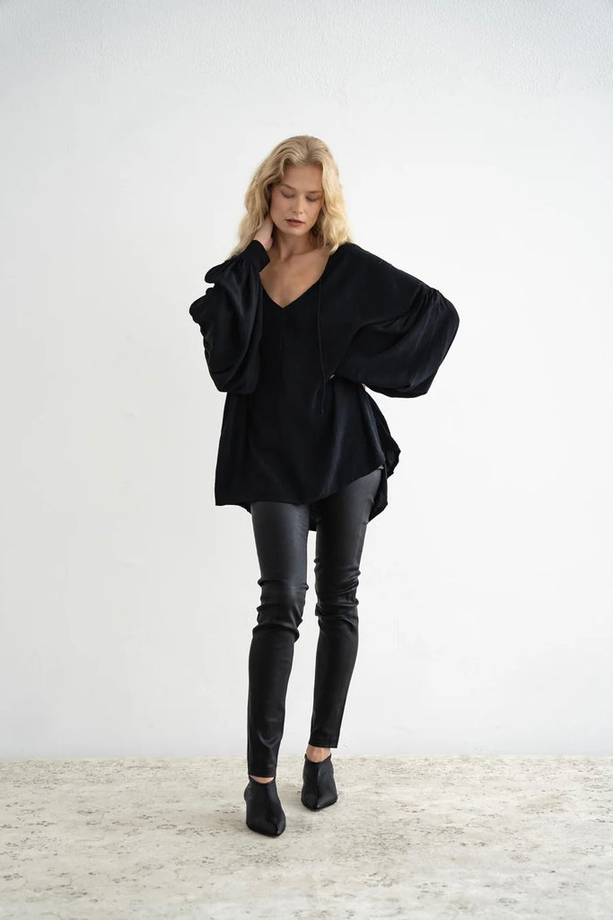 The May blouse offers elegance, ease and understated drama with our signature flowing silhouette. Featuring a deep neck and exaggerated balloon sleeves this versatile trans- seasonal piece can be worn as a dress or blouse. A go-to wardrobe hero to dress up or down, day or night. Crafted from fluid cotton viscose, it drapes beautifully.