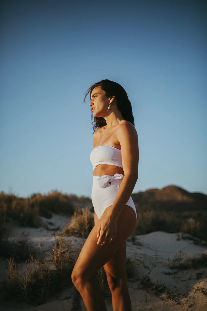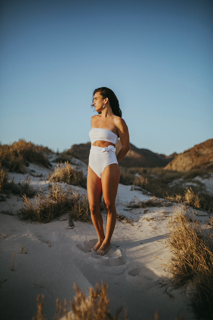The Adela is one of the pieces from the summer 2023 collection. One-piece model with a band at the waist, to accentuate your figure. Moldable to the body. Bust with removable padding. Fully lined.