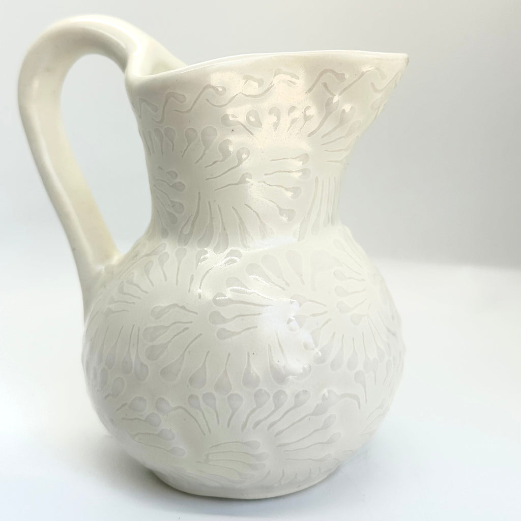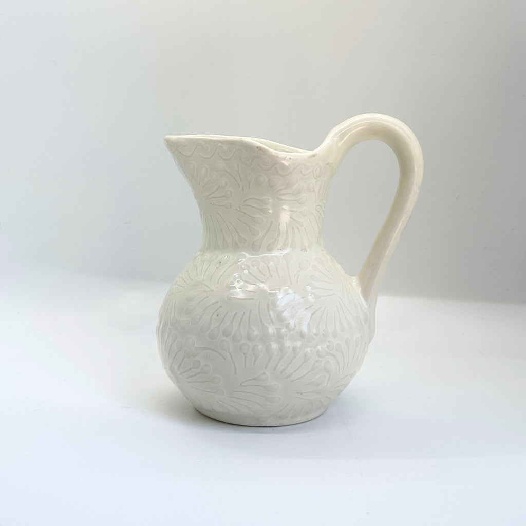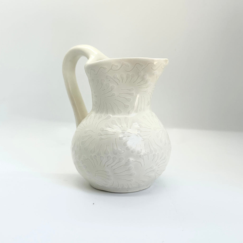 Grace your table with the quiet elegance of this Ivory Talavera Creamer. Slightly larger than the mini version, this handcrafted ceramic piece offers both beauty and function with its soft ivory-on-ivory detailing and traditional Talavera craftsmanship. Made in Mexico by skilled artisans, it’s perfect for serving cream, milk, or sauces—or simply as a decorative accent that adds artisanal warmth to any space.