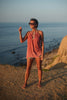 A breezy gauze halter dress handwoven in Mexico, perfect for warm days and effortless evenings. Its lightweight flow and artisanal charm make it a staple for beach strolls or summer soirées.