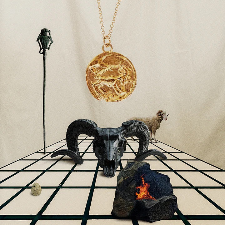 The Aries Medallion is cast in 100% recycled bronze, with a 24kt gold plating.