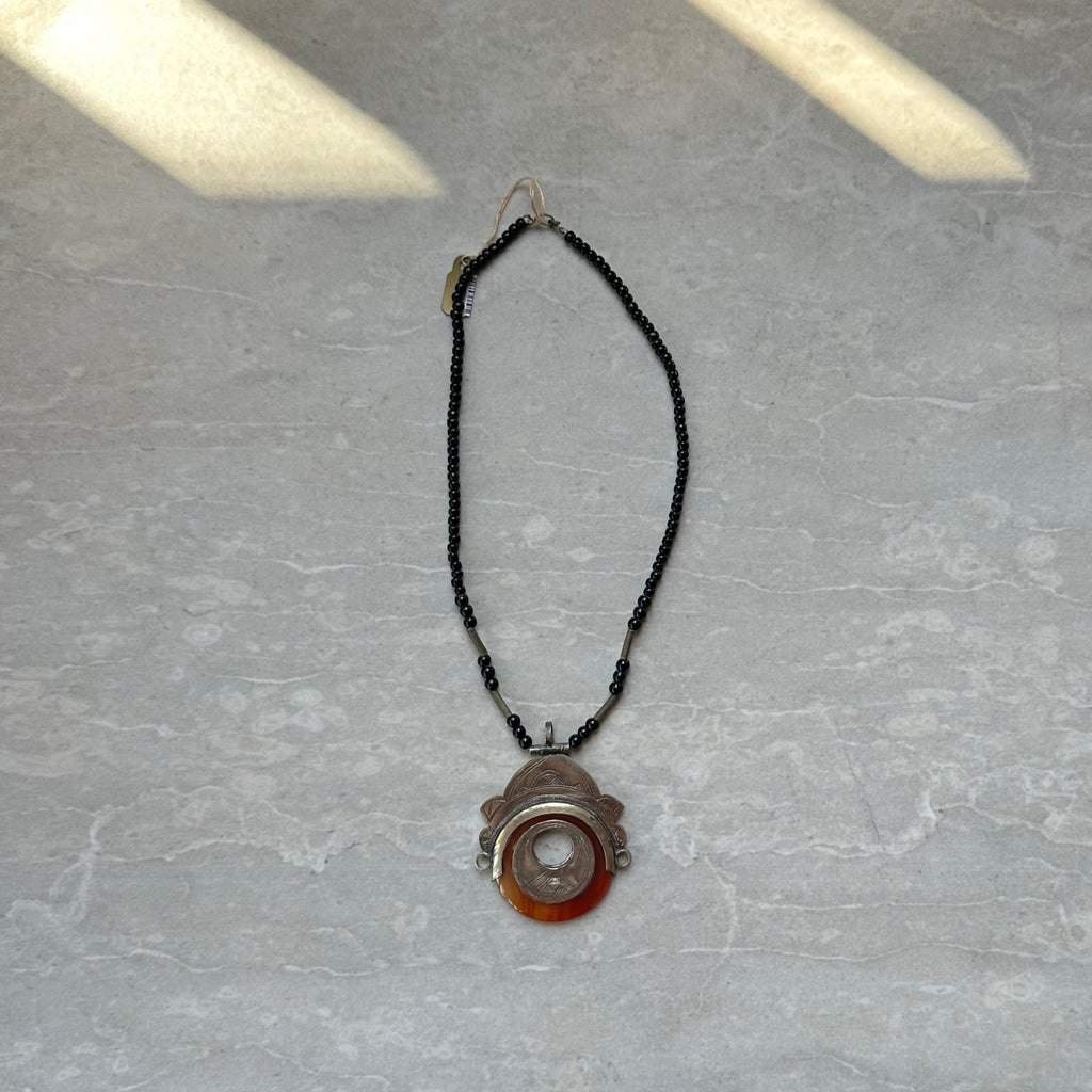 A striking Moroccan Berber silver necklace accented with deep black beads, blending tribal artistry with timeless elegance. Each piece carries the spirit of Berber heritage, making it a bold and meaningful statement.