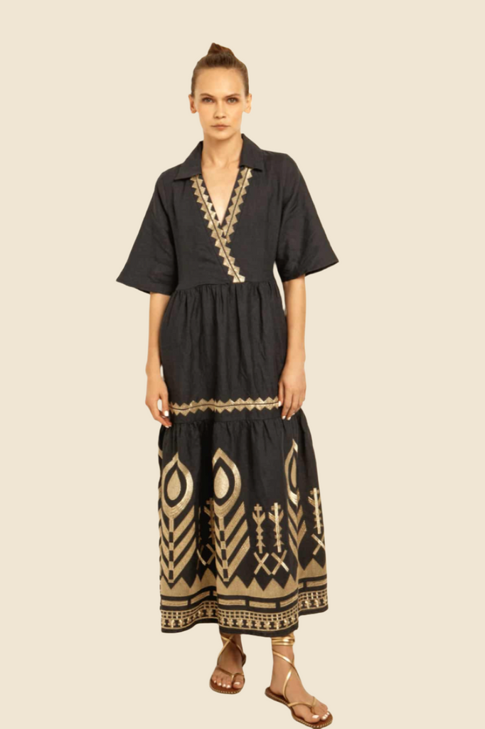 This mid-length dress is anything but simple, and it’s those little details that really make this piece. The cropped cur-out front and gathered back makes it an ultimate choice to style up your look this season.