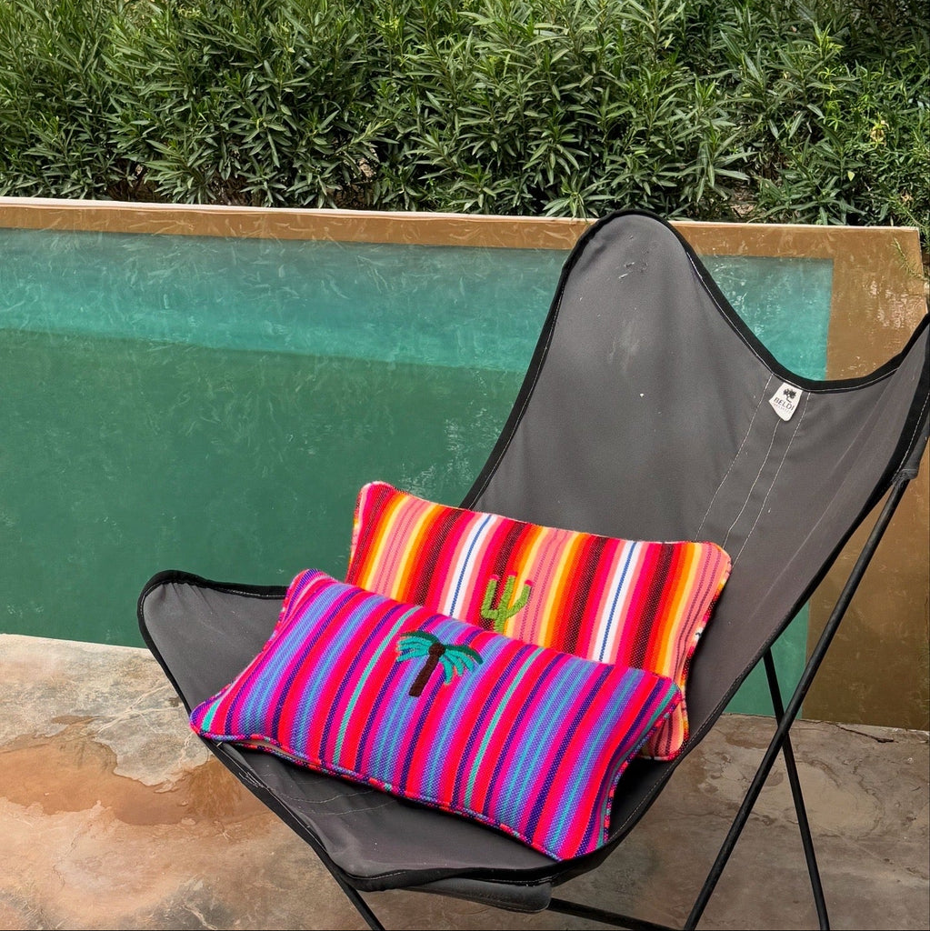Discover our Haik pillows in Candy color. A range of unique and colorful small cotton pillows made by hand by our precious artisans in Marrakech. They will bring a pop of color to your interior !